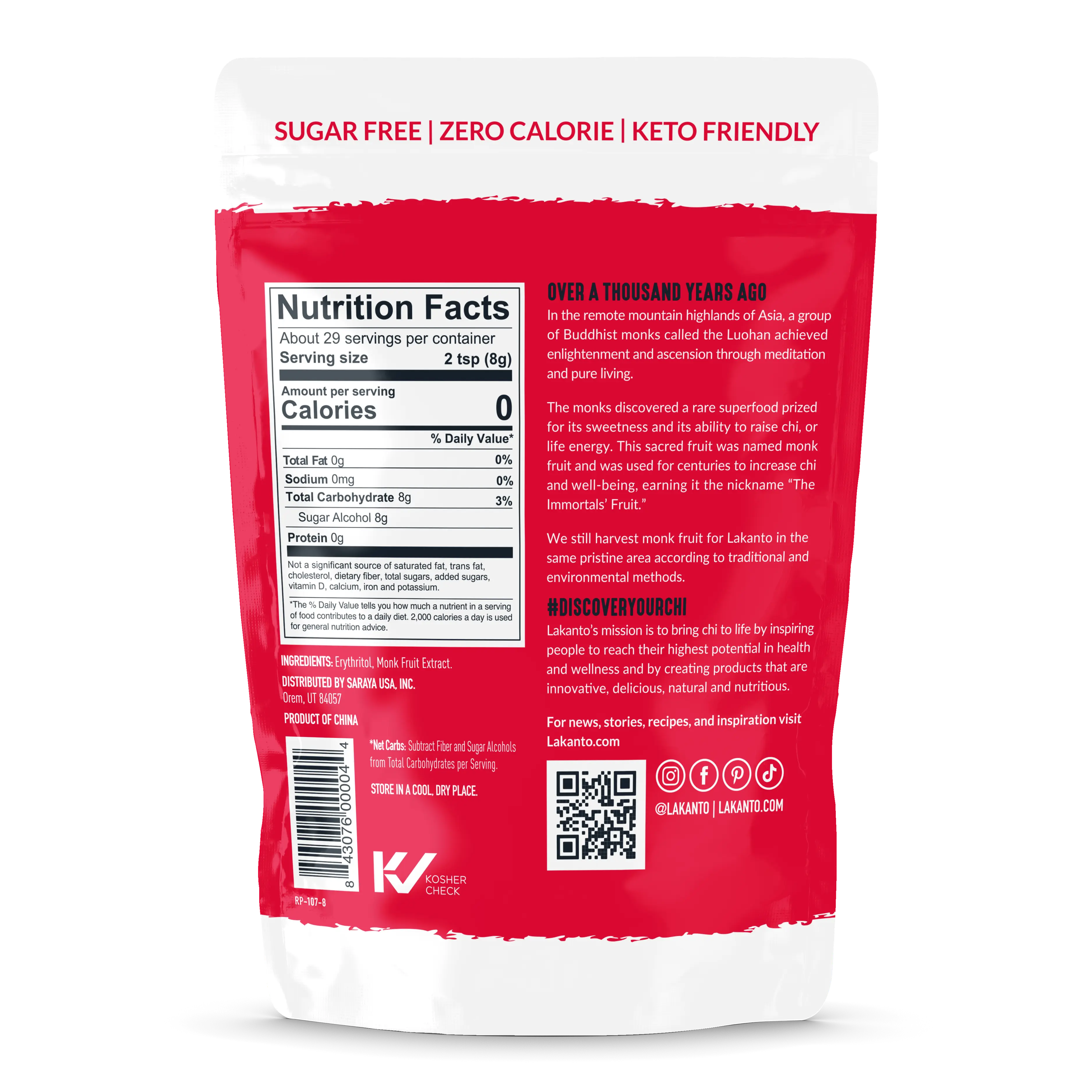 MONKFRUIT INFUSED SWEETNESS WITHOUT THE SUGAR: Lakanto Monkfruit Sweetener with Erythritol is your ideal white sugar substitute, delivering a texture and taste remarkably similar to white sugar without the calories.