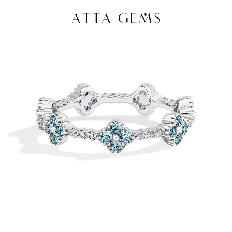 This is a Moissanite ring I wear on my pointy finger. It doesn’t slide around because the back is flat. It sparkles just like a Moissanite should. I love AttaJems. They have quality products. This has become one of my favorite rings because it’s so comfortable and versatile.