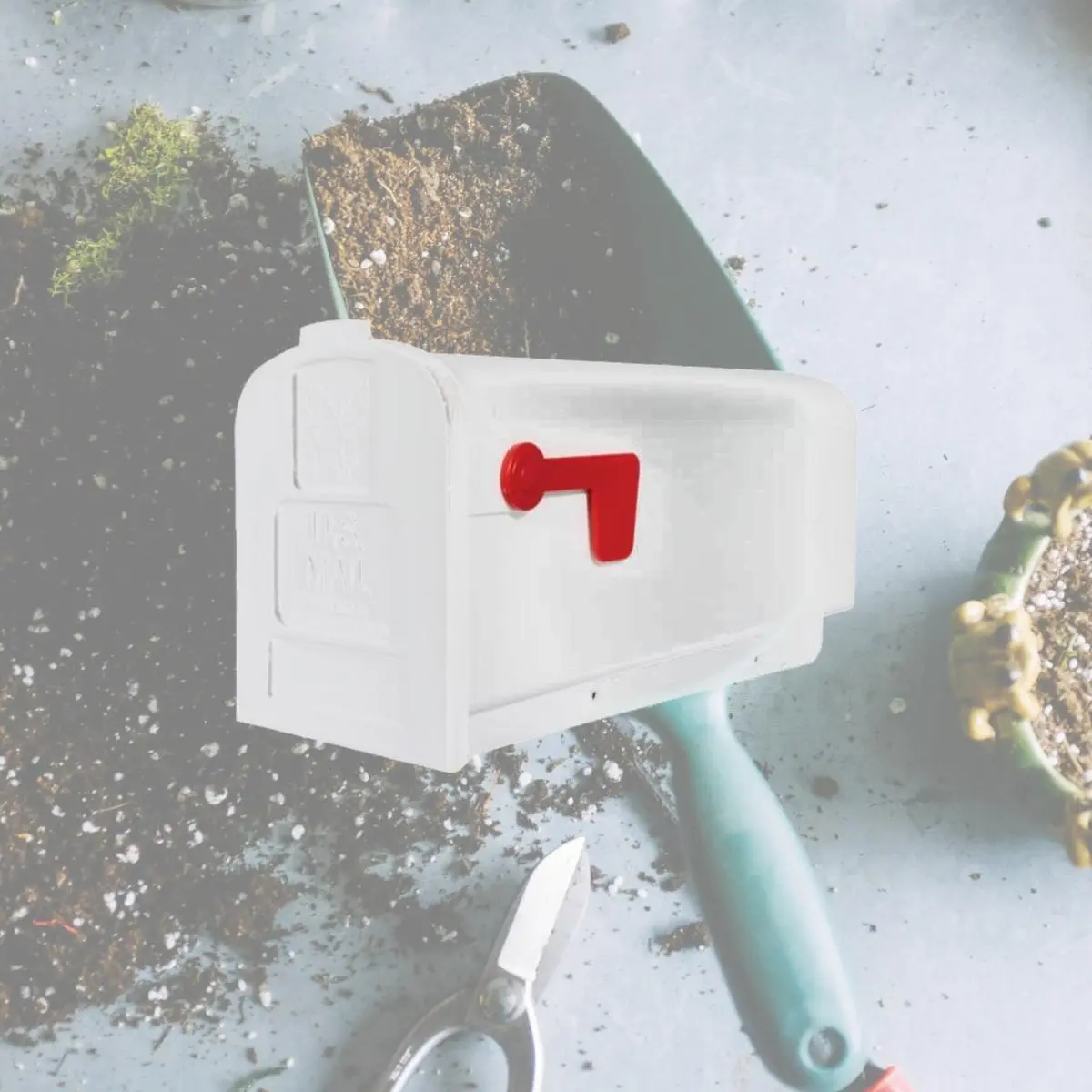 Features Post Mounted Mailboxes. Specifications Color: White. Size: Medium. Material: Plastic. Finish: Powder Coated. Assembly Required: No. Incoming Mail Opening Type: Pull Down. Incoming Mail Opening Width: 7 in.. Lockable: No. Mailbox Type: Post Mount. Lockable: No. Outgoing Mail Indicator: Yes. Rust Resistant: Yes. Style: Classic. US Postmaster General Approved: Yes. Height: 0.563 in.. Length: 19.375 in.. Width: 7.6 in.. Capacity: 875 cu. in.. Country of Origin: United States. Weight: 0.27 lbs.