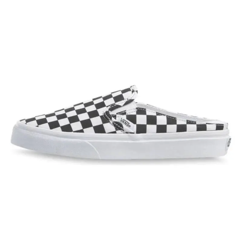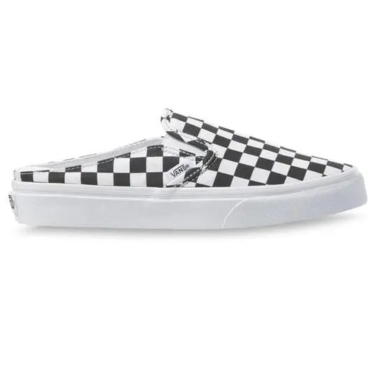 Vans Classic Checkerboard Mule Slip On Footwear for Comfort in Black and White Checkerboard Pattern