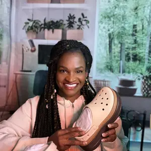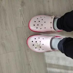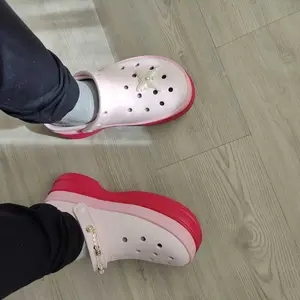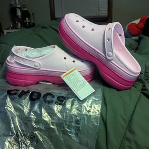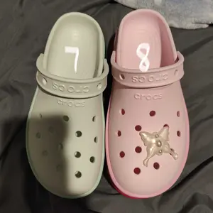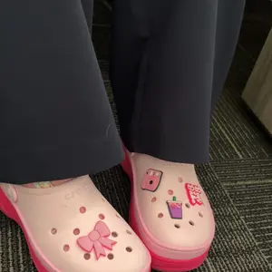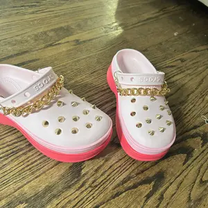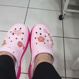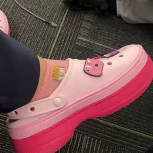 I’m obsessed! I love pink and platforms say less! I get so many compliments when I am out. I added cute Dollar Tree jibitz. I’ll insert a picture. I’m a pink girlie. They are comfy and they are my favorite purchase of this year.