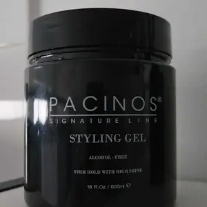 I love this gel. I’ve been slicking my hair for 35 years and this is by far the best quality product. It’s alcohol free, it doesn’t flake and it holds my hair all day. Thank you Pacinos