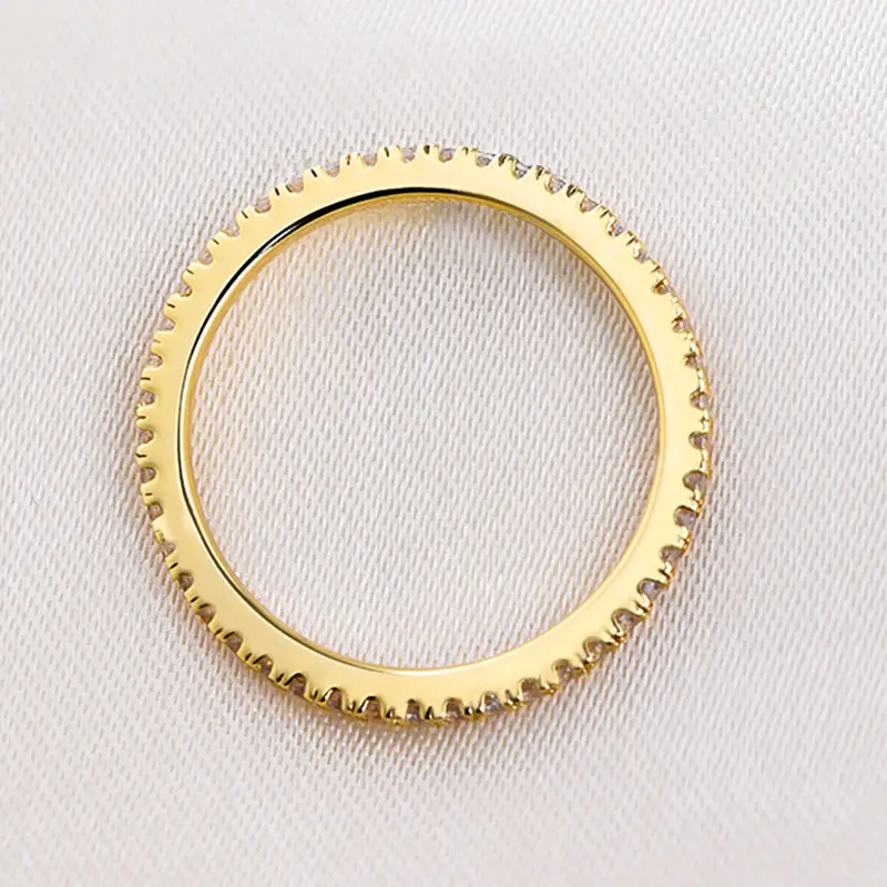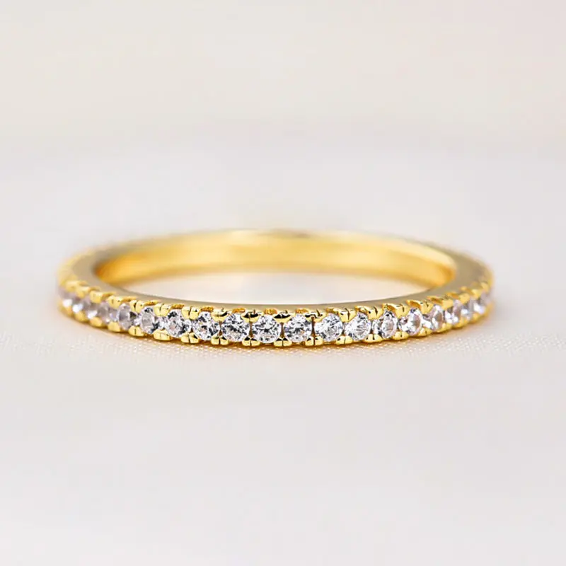 5. Effinny Full Eternity Thin Golden Wedding Ring,5A Cubic Zirconia Stackable Ring for Women In Sterling Silver Outdoorfun