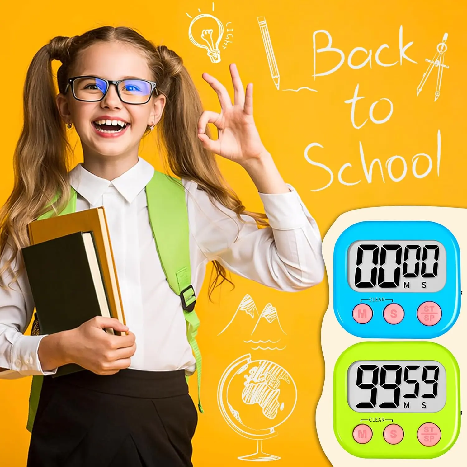 1 Blue & 1 Green Timer: Measures 2.91 * 2.75", large screen, large numbers, easy to read.