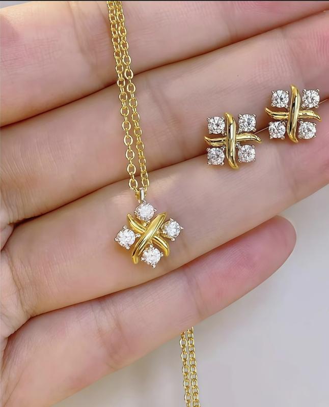This necklace features a stunning four-stone design, crafted with synthetic moissanite. The pendant showcases a classic cross motif, adding a touch of sophistication. Perfect for those who appreciate timeless jewelry.