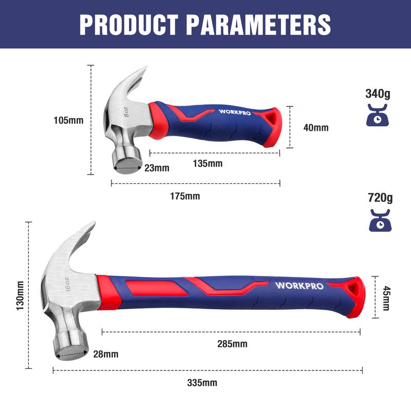 ·General Usage: This WORKPRO 2-count fiberglass claw hammer set is perfect for most general jobs. Home repairs,construction work, wood working, fence building, and general maintenance repairs. The rip claw design provides versatility, so you can tackle a variety of different purposes including pulling nails and prying boards, which is all done with ease