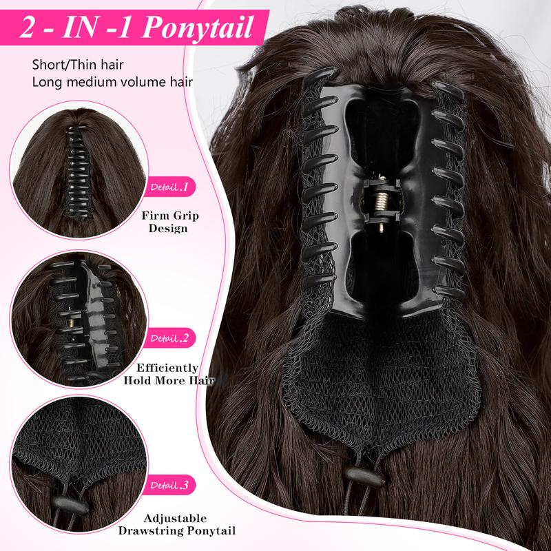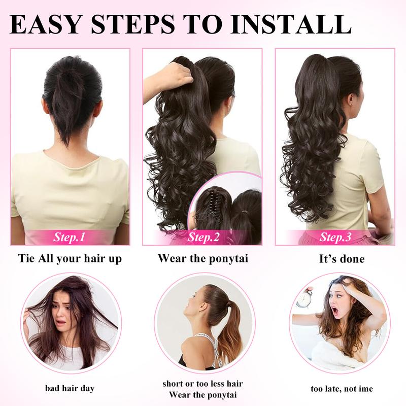 Simple to use:Open the claw comb on the top of ponytail and clip the extension of ponytail on your own bun or ponytail! Built-in claw clips will blend in seamlessly without slipping off even on windy days, clips in perfectly over your own ponytail