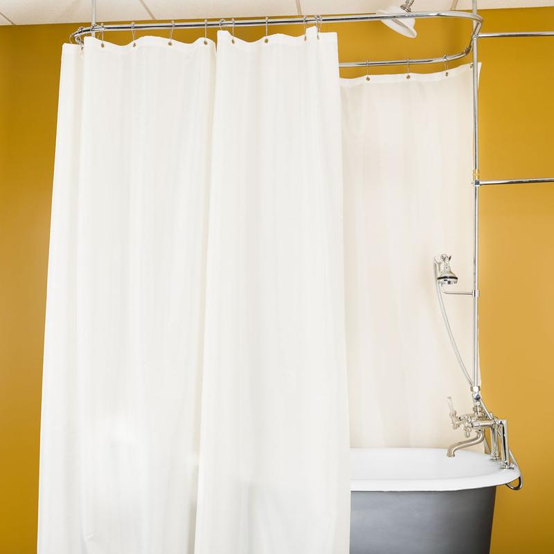 No clawfoot shower tub enclosure is complete without a high-quality, water-resistant shower curtain. This beautiful curtain by Randolph Morris works perfectly in bathrooms of all styles and color schemes. It is made of premium polyester and designed to last. It covers the entire width of the tub and has a magnetic bottom ensuring the water stays in the tub where it belongs.