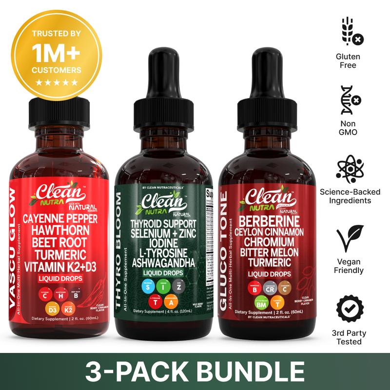 Target three core areas of wellness—thyroid, blood flow, and glucose—through one potent daily routine. This synergistic liquid bundle is formulated to support metabolic balance, energy, and vitality from the inside out.*