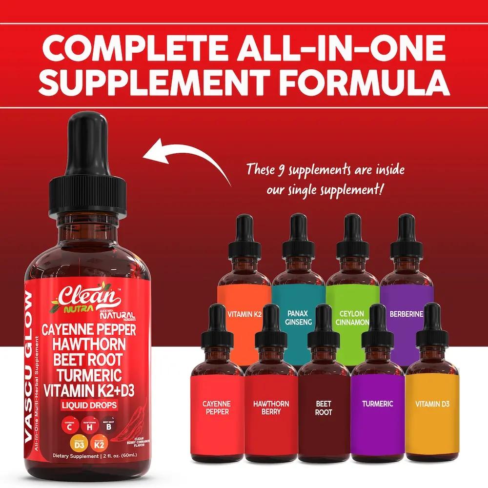 Beet Root, Cayenne Pepper, Hawthorn, Turmeric, Vitamin K2, Vitamin D3, Berberine, Ceylon Cinnamon, Bitter Melon, Chromium, Ashwagandha, Maca Root, Schisandra, Panax Ginseng