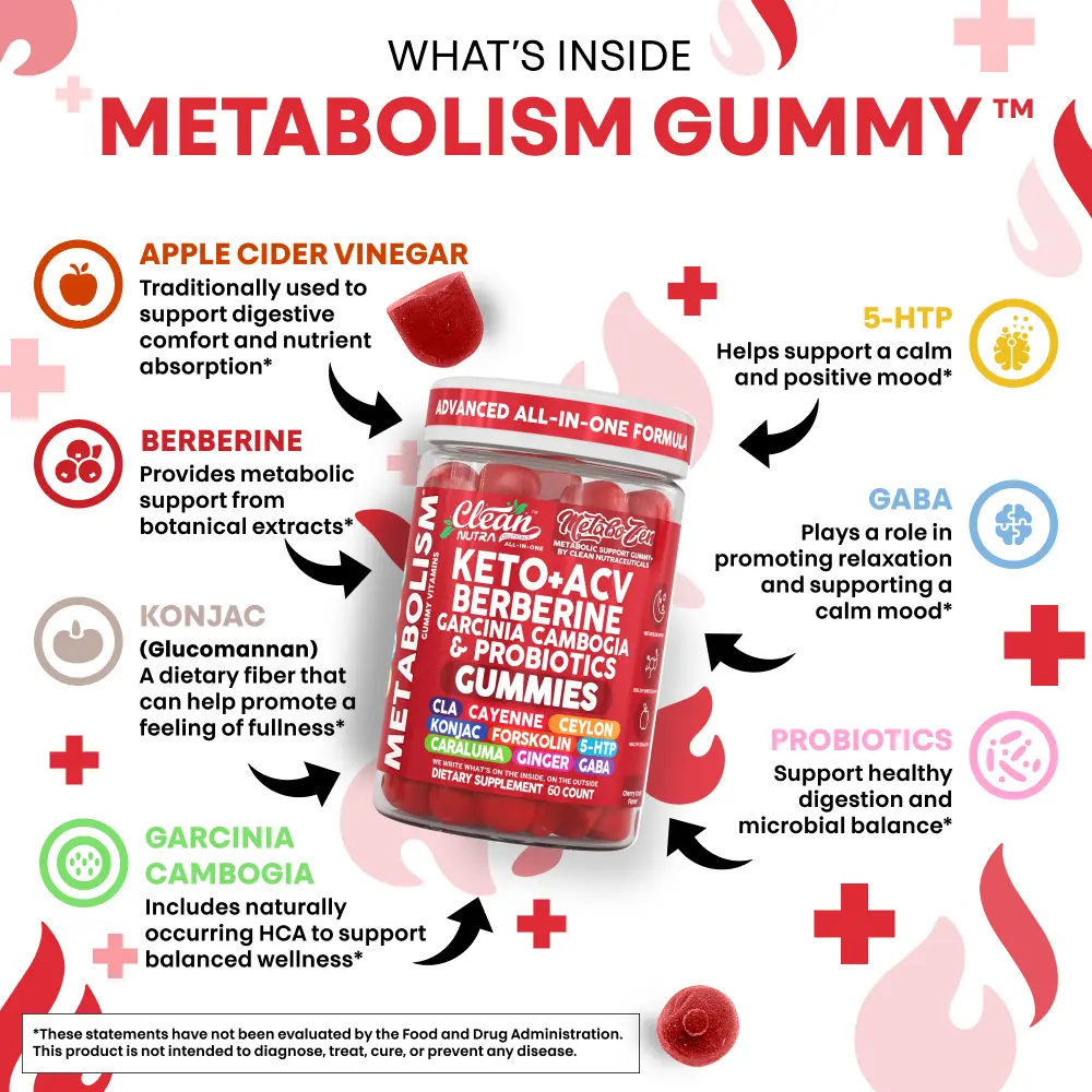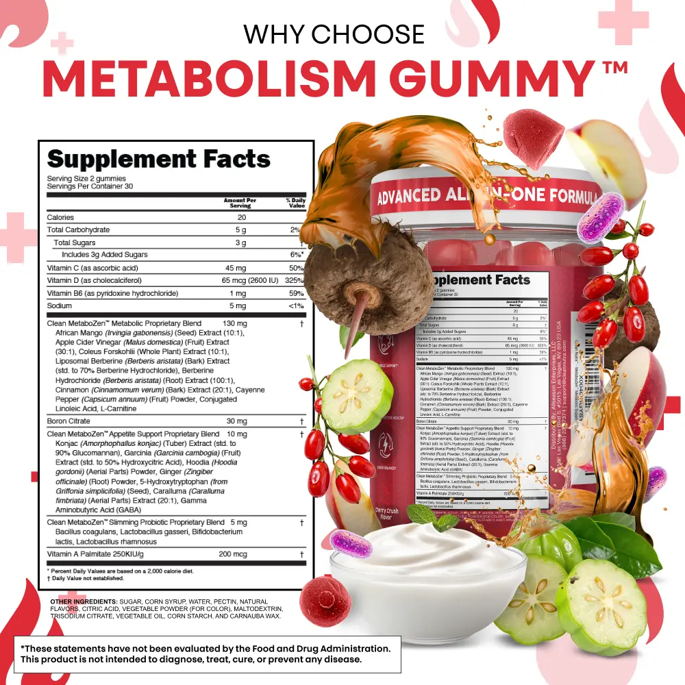 Metabo Zen is a daily gummy formulated to support internal wellness, digestive balance, and functional daily routines. Designed for adults seeking clean, plant-based support, this formula combines traditional ingredients like apple cider vinegar and probiotics with a modern blend of botanicals and adaptogens.