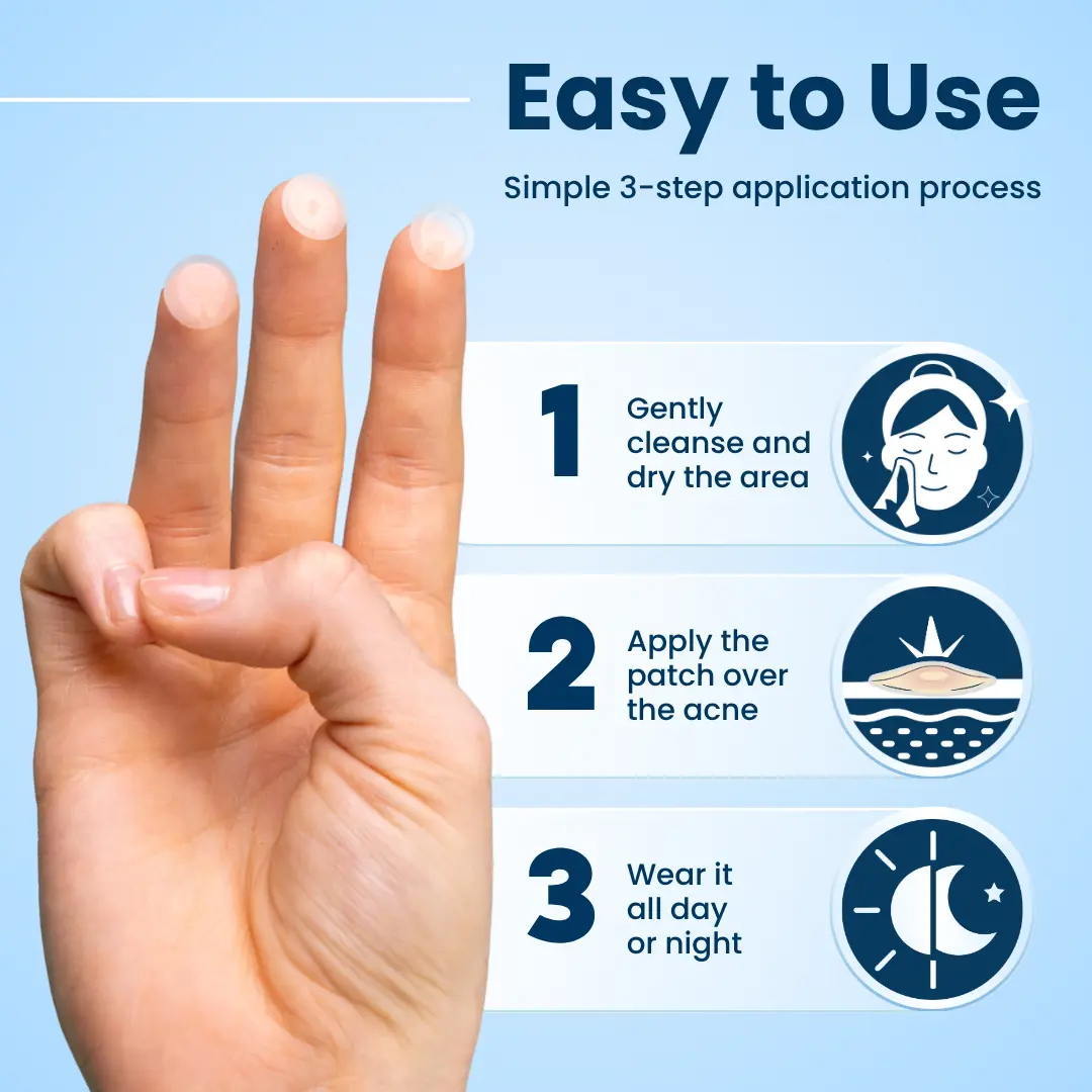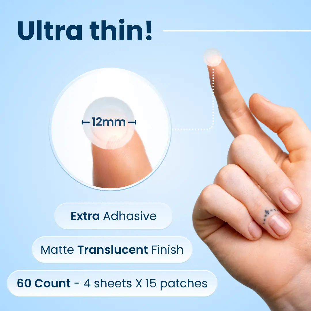 DermaDot targets pimples, zits, and surface-level blemishes. It forms a breathable barrier that shields against bacteria and environmental stressors. Results in a visibly calmer, clearer complexion. The patches blend seamlessly with all skin tones and are made for discreet day or night wear.