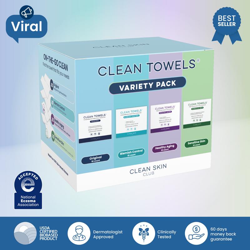 Limited-Edition Holiday Gift Box- Includes 4 travel packs: 10 Original, 10 Blemish Control, 10 Healthy Aging, and 10 Sensitive Skin towels- Total of 40 single-use face towels