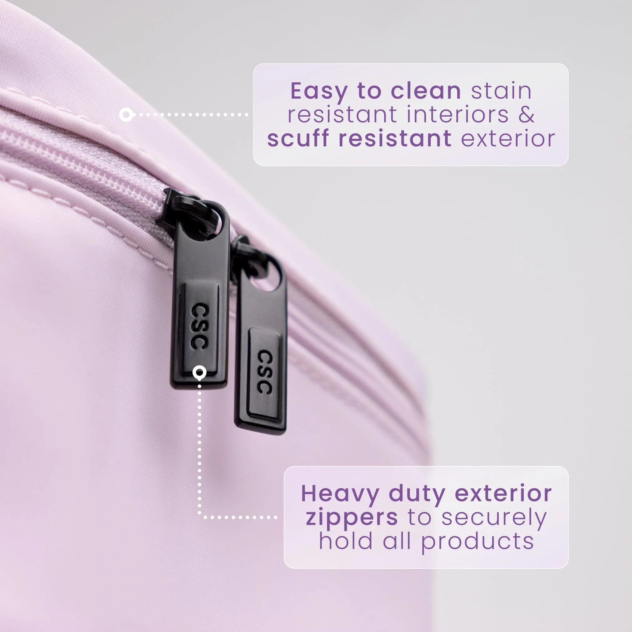 ·Secure Zippers: Heavy duty zippers ensure all products are securely held.
