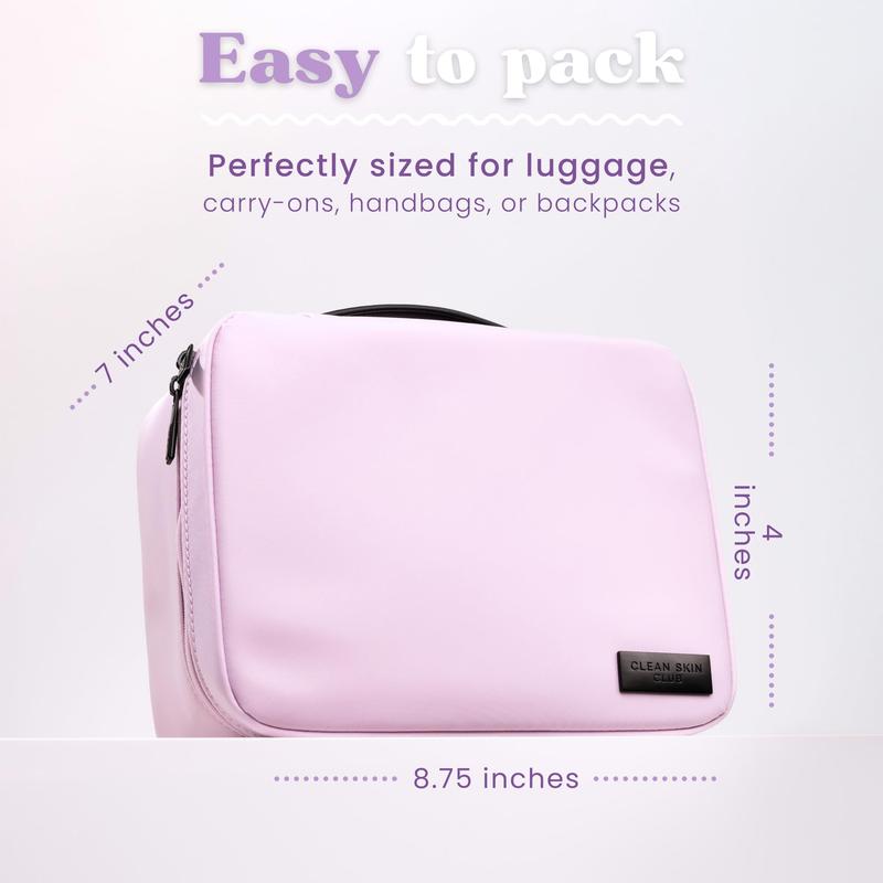 The CLEAN SKIN CLUB Clean Towels XL Dedicated Travel Cosmetic Makeup Bag is a spacious, organized, and portable storage case. It features a dedicated compartment for Clean Towels XL, stain and scuff resistant materials, and heavy duty zippers for secure storage. Available in two colors, it is perfect for travel and on-the-go use.