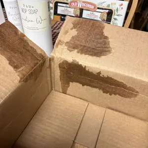 Box arrived soaked and opened the box up and verified that the cap on the multipurpose cleaner was busted. Over 3/4 of the bottle is gone. Plus side, does smell Great!