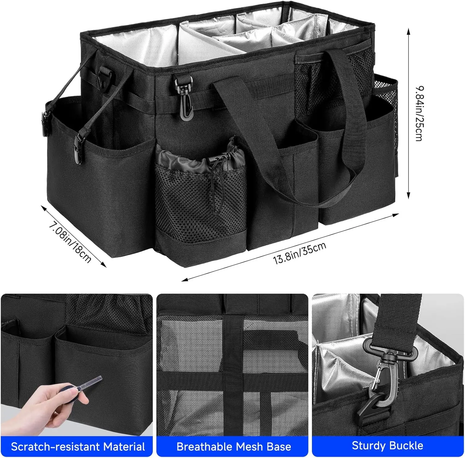 Wide Application: The cleaning tote bag can be not only a cleaning bag, but also a trunk organizer bag, gardening tool bag, workshop organizer bag, craft tote bag, under sink bag, picnic items bag, horse bag, and more, further enhancing its usefulness.