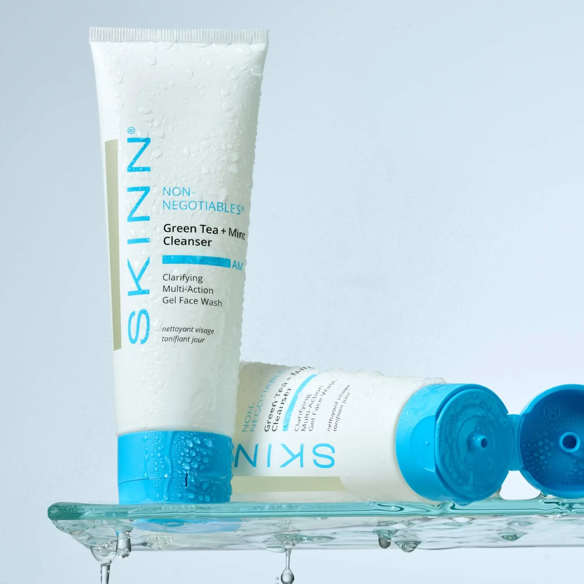 | Ingredients | Green Tea + Mint Cleanser: VITIS VINIFERA (GRAPE) JUICE EXTRACT, AQUA, SODIUM LAUROYL SARCOSINATE, COCAMIDOPROPYL BETAINE, COCO-GLUCOSIDE, GLYCERYL OLEATE, LAVANDULA HYBRIDA (LAVENDER) OIL, MELALEUCA ALTERNIFOLIA (TEA TREE) LEAF OIL, MENTHA PIPERITA (PEPPERMINT) OIL, SALICYLIC ACID (EXFOLIANT), GLYCOLIC ACID, MALIC ACID, LACTIC ACID, CAMELLIA SINENSIS (GREEN TEA) LEAF EXTRACT, SPONDIAS MOMBIN PULP EXTRACT, MANGIFERA INDICA (MANGO) PULP EXTRACT, MUSA SAPIENTUM (BANANA) PULP EXTRACT, PUNICA GRANATUM (POMEGRANATE) EXTRACT, MALTITOL, GLYCOSAMINOGLYCANS, MAGNESIUM ASCORBYL PHOSPHATE, ASCORBYL PALMITATE, ACRYLATES COPOLYMER, DISODIUM EDTA, TOCOPHEROL, HYDROGENATED PALM GLYCERIDES CITRATE, GLYCERIN, TRISODIUM EDTA, POTASSIUM SORBATE, LINALOOL, LIMONENE, SODIUM BENZOATE, BENZYL ALCOHOL, DMDM HYDANTOIN, PHENOXYETHANOL, ETHYLHEXYLGLYCERIN, CITRIC ACID, SODIUM CHLORIDE Olive + Enzyme Cleanser: CITRUS AURANTIUM DULCIS (ORANGE) JUICE, CARTHAMUS TINCTORIUS (SAFFLOWER) OLEOSOMES, HELIANTHUS ANNUUS (SUNFLOWER) SEED OIL, AQUA, CAPRYLIC/CAPRIC TRIGLYCERIDE, ISOPENTYLDIOL, GLYCERIN, SODIUM LAUROYL SARCOSINATE, SQUALANE, PAPAIN (PAPAYA ENZYMES), CITRUS AURANTIUM AMARA (BITTER ORANGE) PEEL OIL, OLEA EUROPAEA (OLIVE) FRUIT OIL, PERSEA GRATISSIMA (AVOCADO) OIL, CALENDULA OFFICINALIS (MARIGOLD) FLOWER EXTRACT, PICEA MARIANA (BLACK SPRUCE) BARK EXTRACT, CUCURBITA PEPO (PUMPKIN) SEED EXTRACT, OPUNTIA FICUS-INDICA (PRICKLY PEAR) SEED OIL, ANANAS SATIVUS (PINEAPPLE) FRUIT EXTRACT, MANGANESE GLUCONATE, PICHIA/RESVERATROL FERMENT EXTRACT, GLUCONIC ACID, PHENOXYETHANOL, CAPRYLYL GLYCOL, ETHYLHEXYLGLYCERIN, HEXYLENE GLYCOL, ZEA MAYS (CORN) OIL, TOCOPHEROL, DMDM HYDANTOIN, SODIUM BENZOATE, LIMONENE, BETA-CAROTENE |