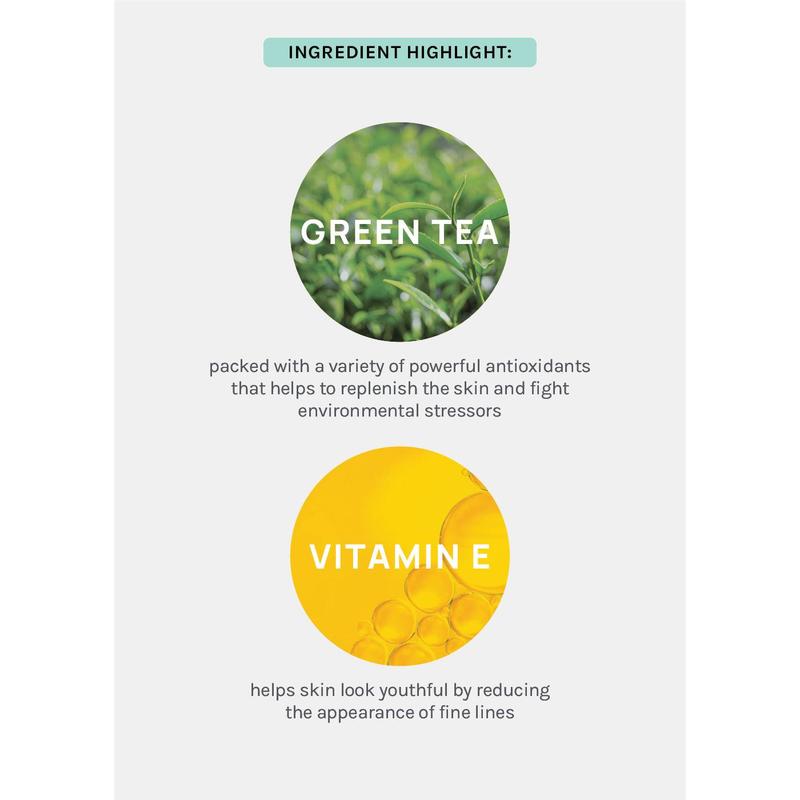 ·Infused with Green Tea and Vitamin E to soothe and brighten the skin