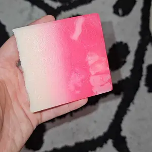 the Soap color pink and white very colorful definitely come came on time just my order in the mail today just like In the picture