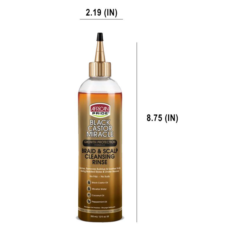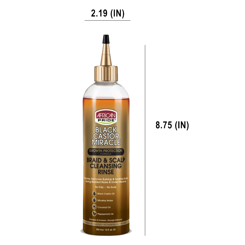 Adjust braids or gently lift weave or wig to expose scalp. Position the nozzle to scalp and apply rinse following part-lines. Massage into scalp and hair until clean. Rinse with water. Follow with African Pride Black Castor Miracle Sealing Oil or African Pride Olive Miracle Braid Sheen Spray.