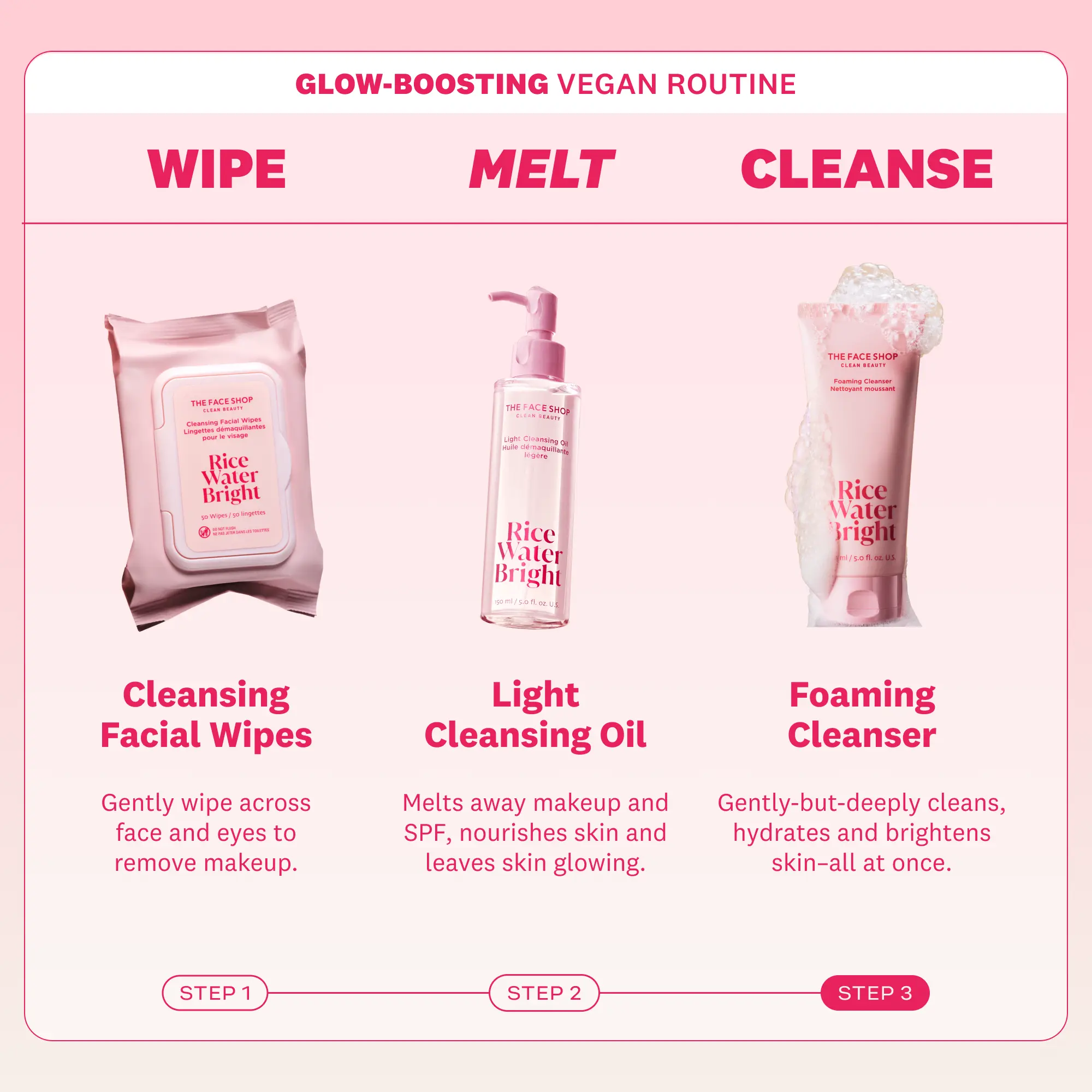 These Rice Water Bright makeup wipes and cleansing oil melt away every trace of makeup while keeping my skin soft and radiant. A gentle, effective glow-up in every swipe! #skincareroutine #ricewaterbright #cleanskinglow #doublecleansemagic #fyp