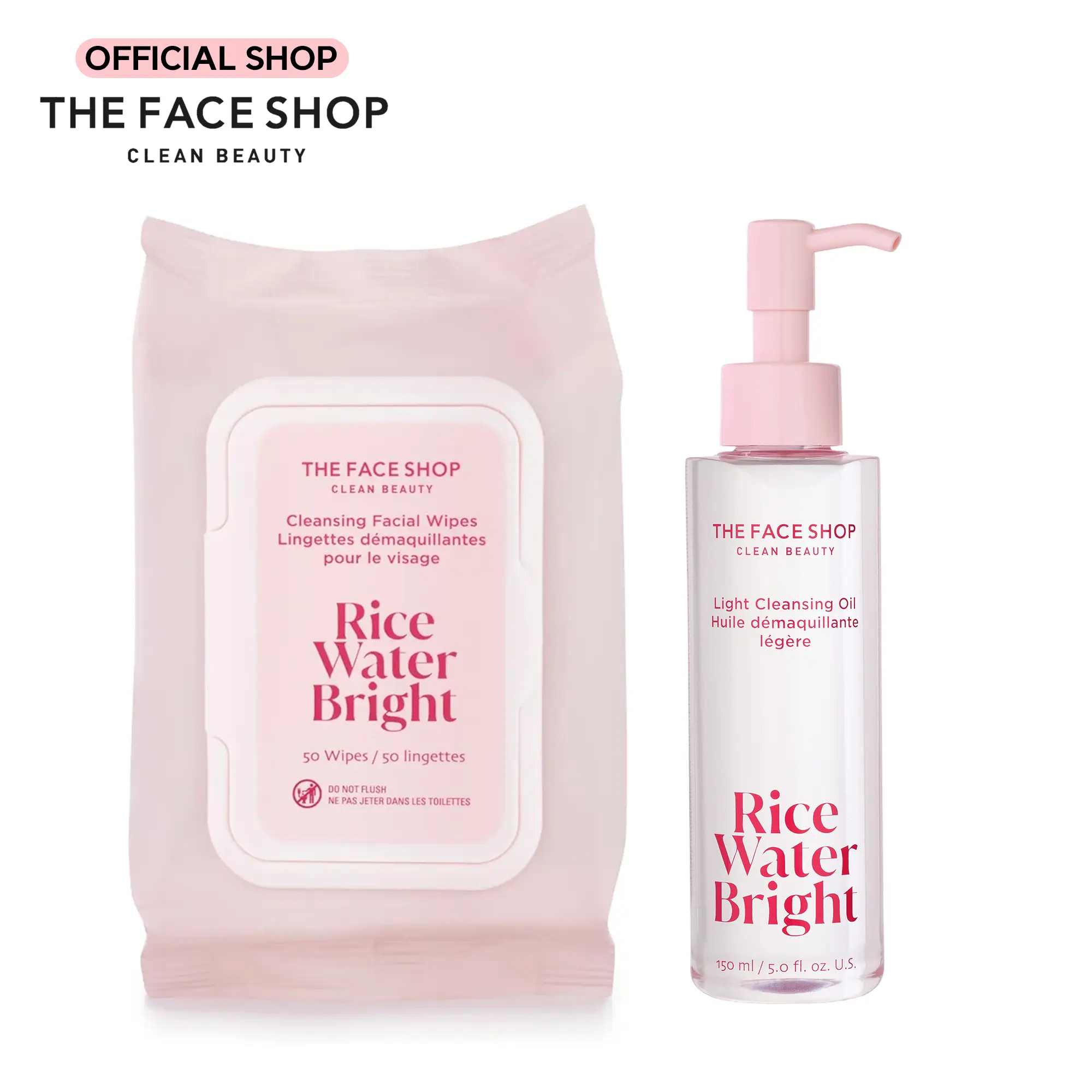 5. [THE FACE SHOP] Rice Water Bright Deep Clean Duo l Cleansing Oil & Facial Wipes Set for Makeup Removal, Pore Purifying & Radiant, Soothed Skin l Korean Skincare