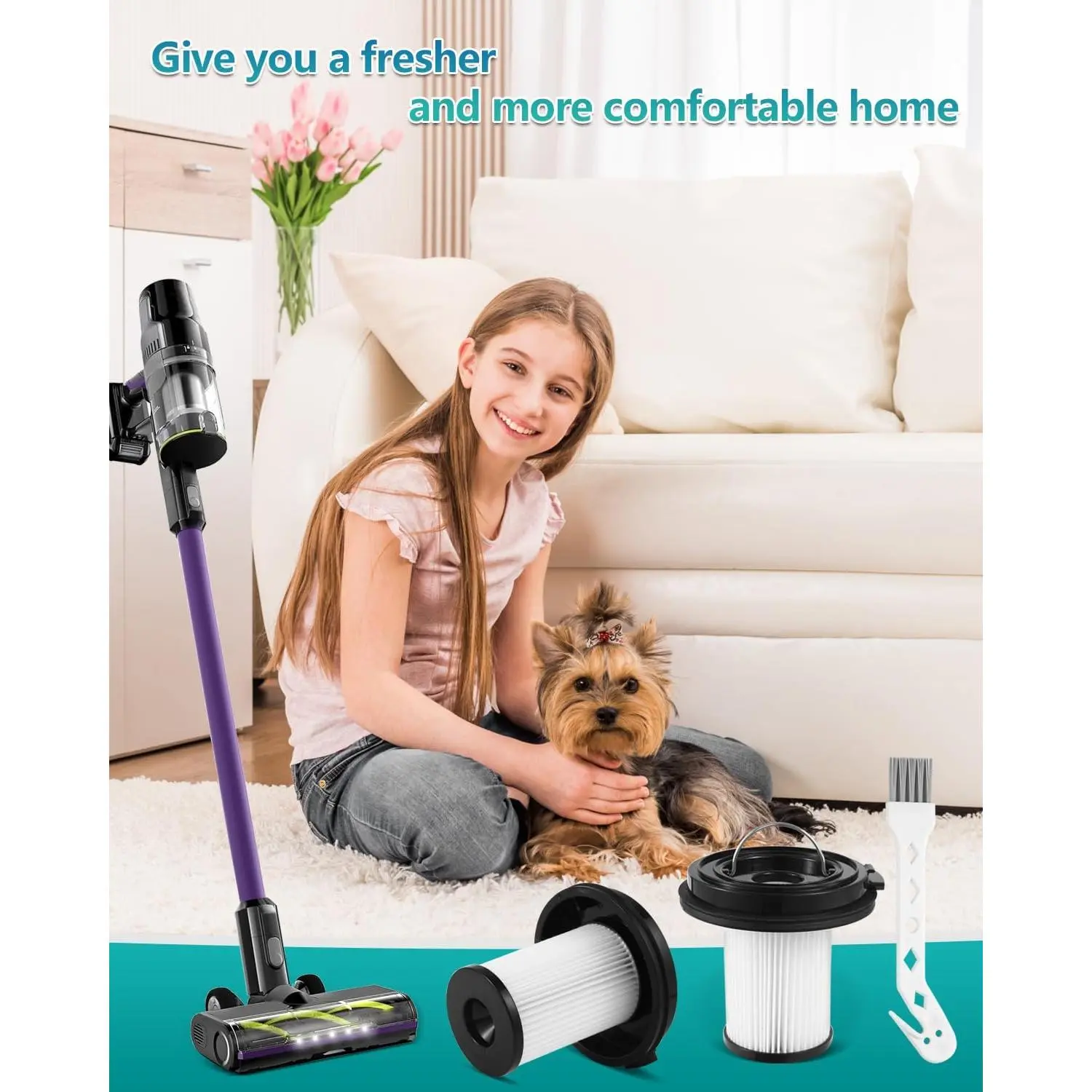 【 Value Combo Set】Keep your home clean and comfortable with our comprehensive cleaning combo set, which includes 2 HEPA Pleated filters and 1 Cleaning Brush. This set can cater to your needs for up to half a year, offering both cost-effectiveness and convenience for all your replacement requirements.