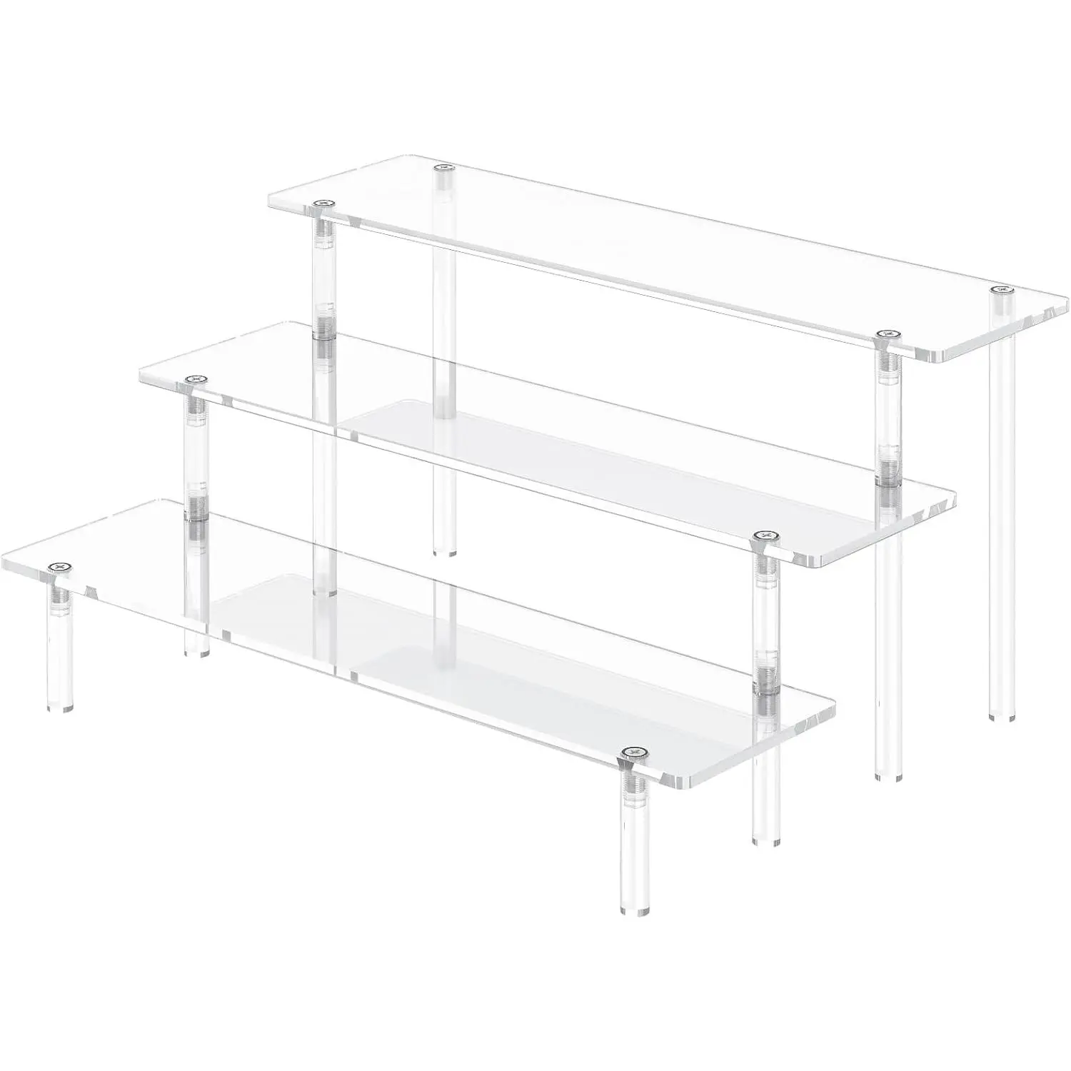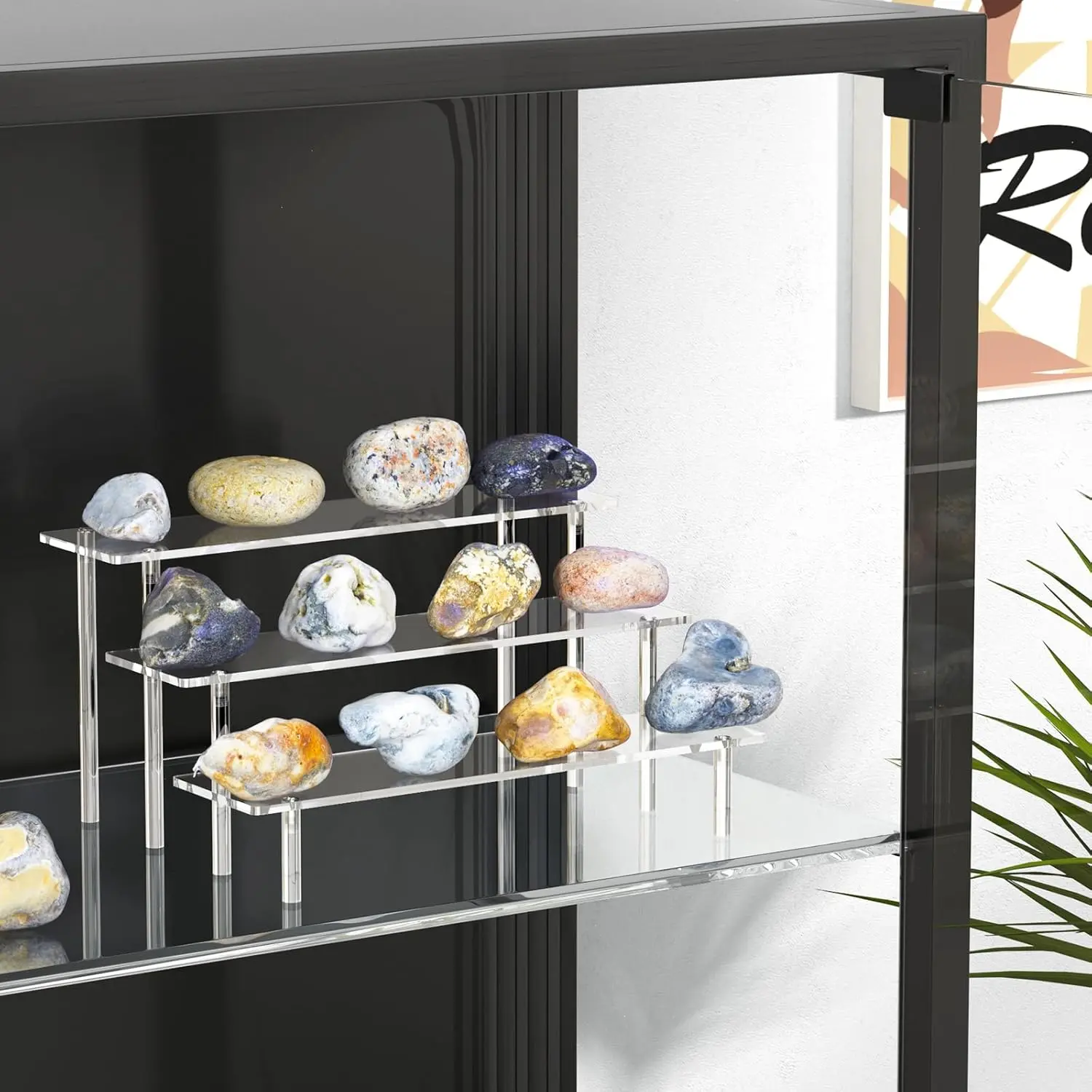 Our riser stands are made of transparent and premium acrylic. The transparent material doesn't appear obtrusive. You can put it on the table, bookcase, office, exhibition halls, shop windows, dessert table and anywhere to display your items.