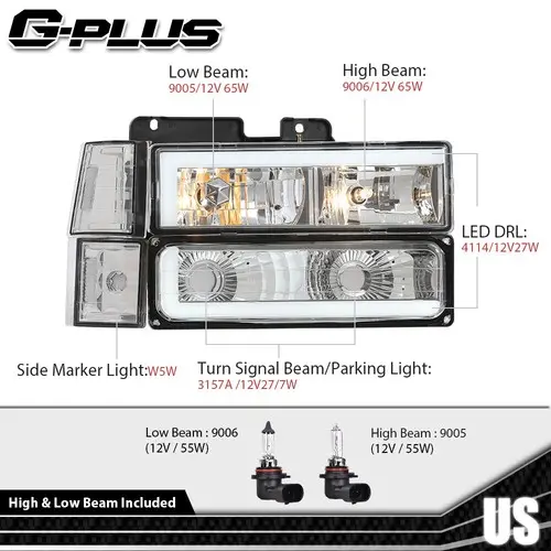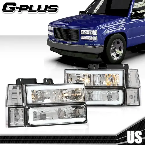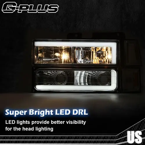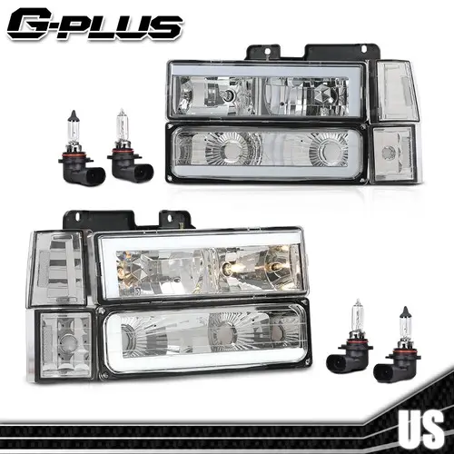 5. Fit For 94-00 C/K Suburban Clear Corner Chrome LED DRL Headlights Bumper Lamps