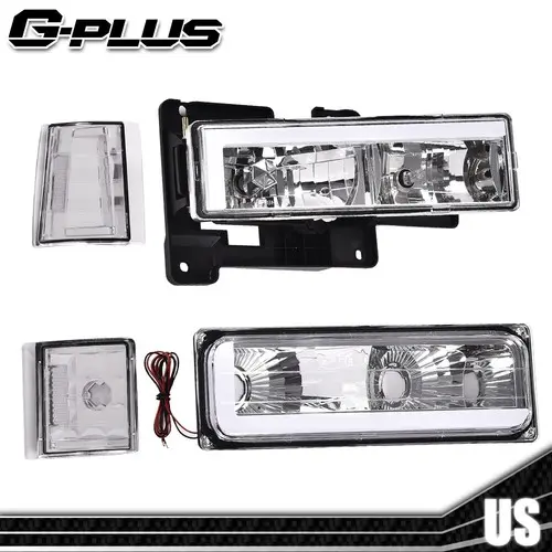 Fit For 94-00 C/K Suburban Clear Corner Chrome LED DRL Headlights Bumper Lamps