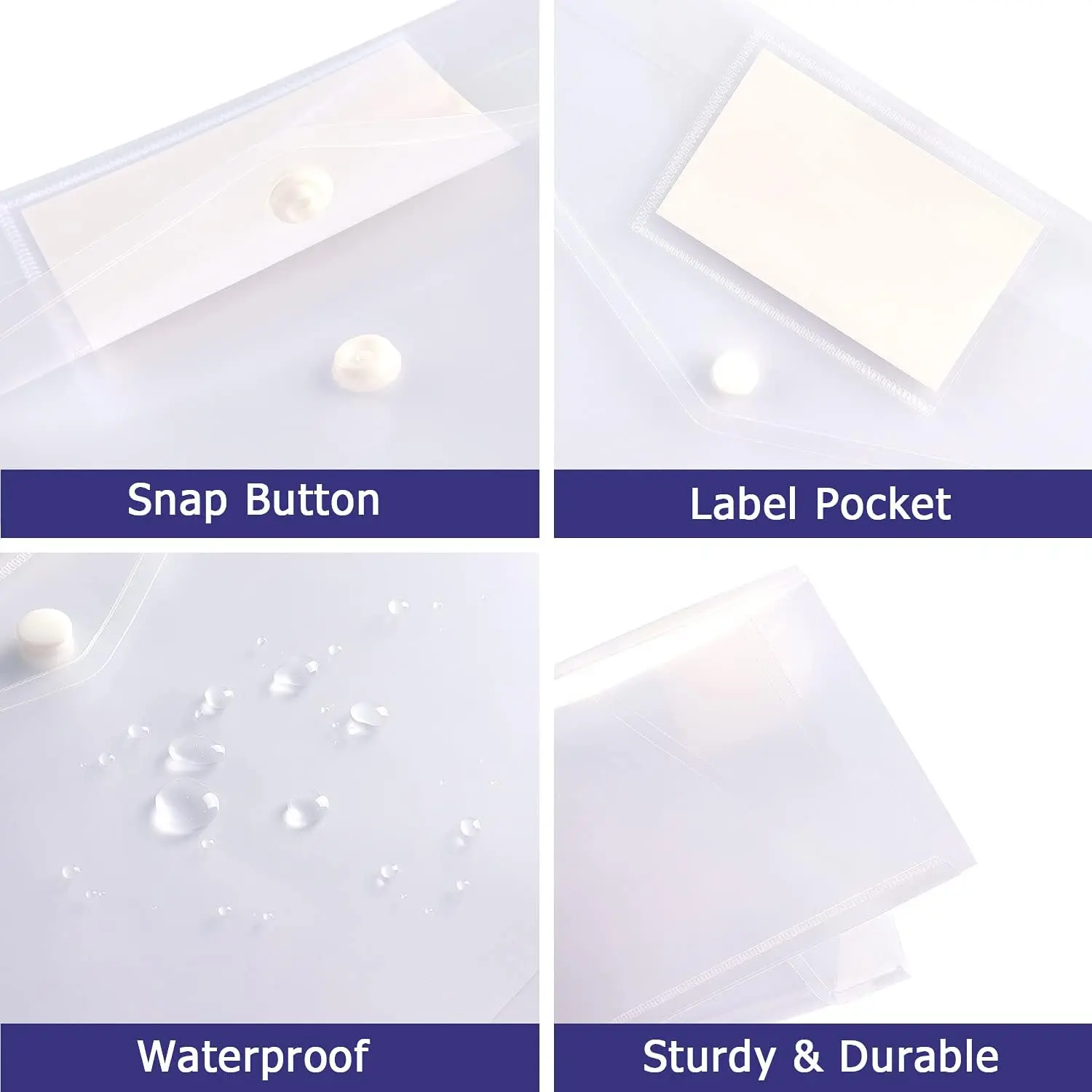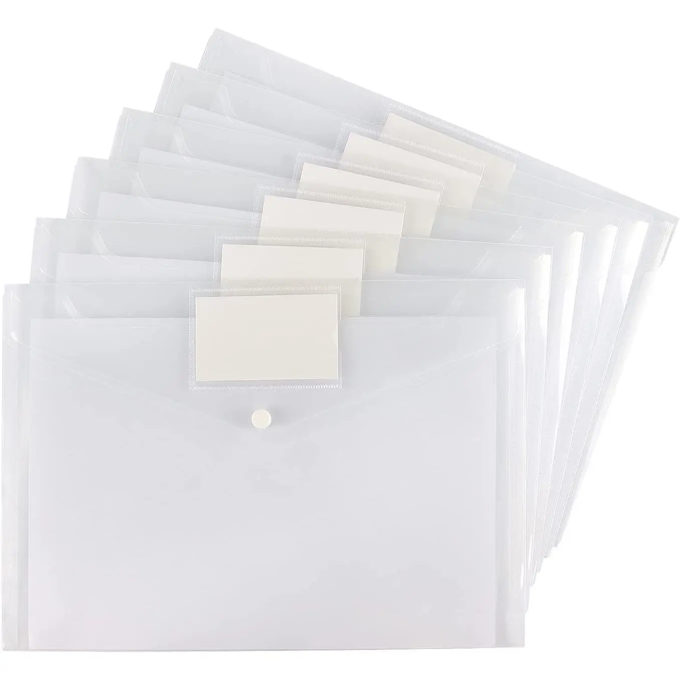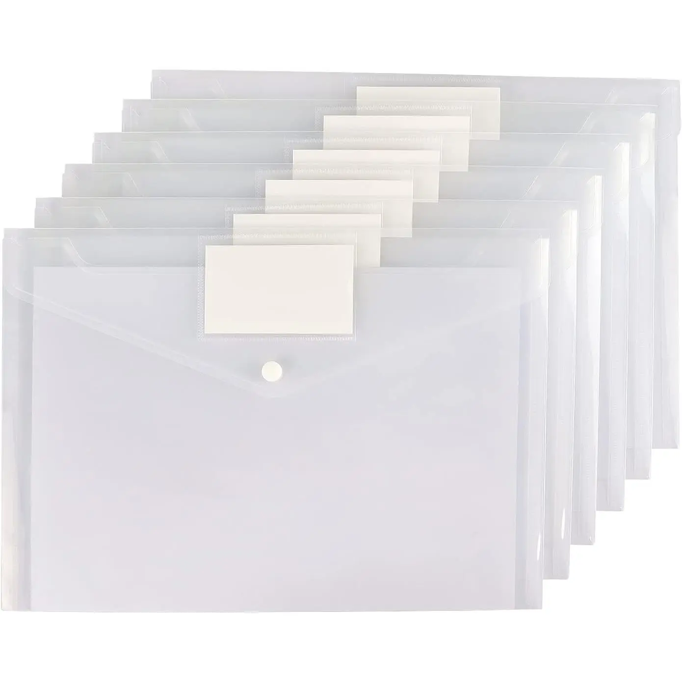 6 Pack Clear Document Folders Plastic Envelopes Poly Envelopes File Envelopes with Label Pocket and Snap Button for Home Work Office Organization, Letter Size/A4 Size, White