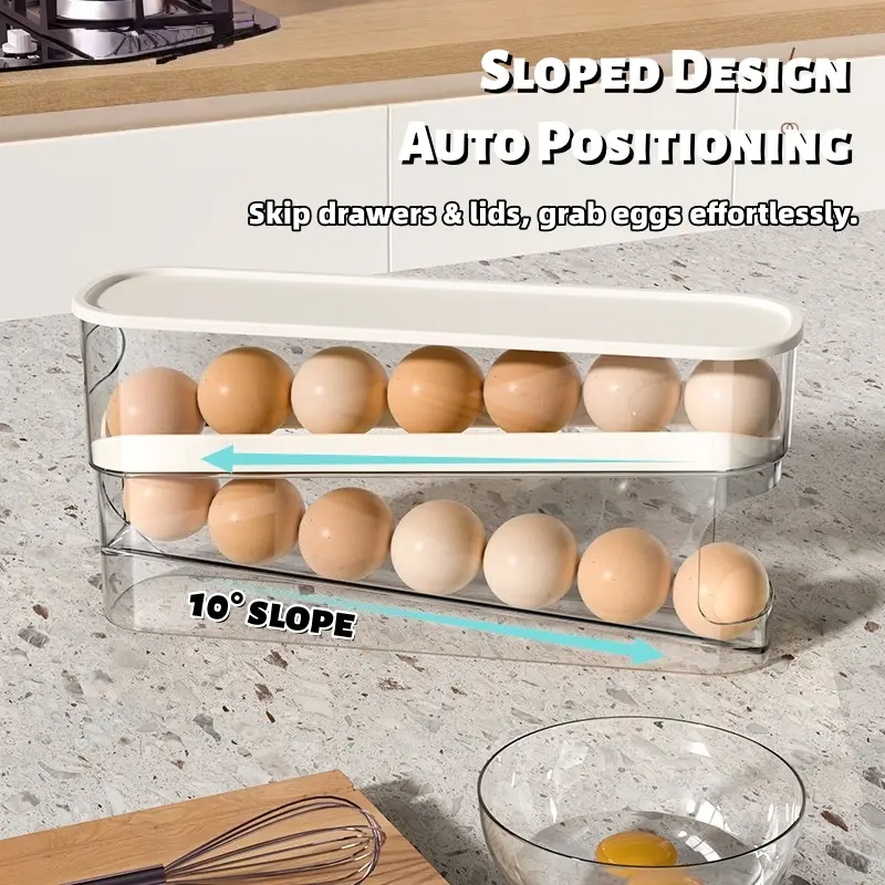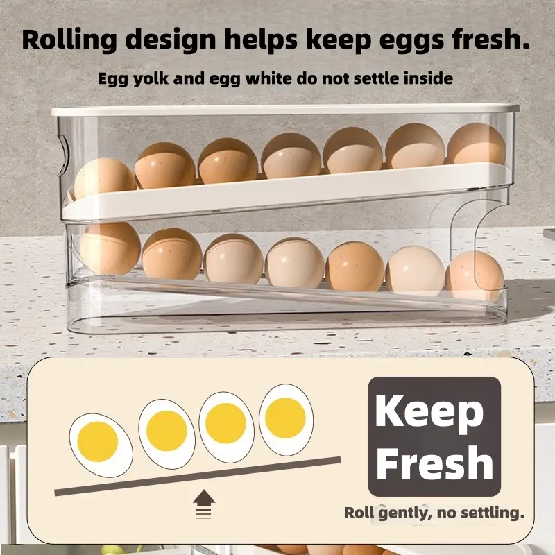 Double Layer Egg Storage Box, 1 Count SpaceSaving Rolling Egg Storage Box, WashablePlastic Egg Holder for Refrigerator, HomeOrganization, Stackable Fridge Organizer