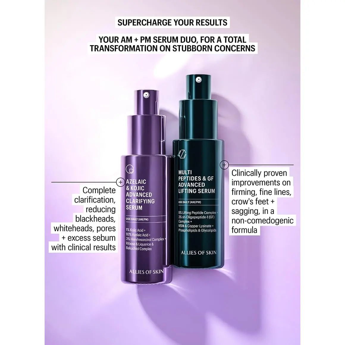 The advanced, clinically proven serum duo for a transformation on multiple skin concerns. Targeting the 6 most stubborn skin concerns, Advanced Clarifying Serum gets to work on enlarged pores, blackheads, whiteheads, excess sebum, uneven skin texture, and dullness in just 1 use a day. Pair with celeb-loved Growth Factor Serum, for firming, lifting and smoothing results for both face and eye, helping visibly diminish crow's feet, tighten sagging skin on the neck and reveal a fresher, firmer look without invasive procedures.