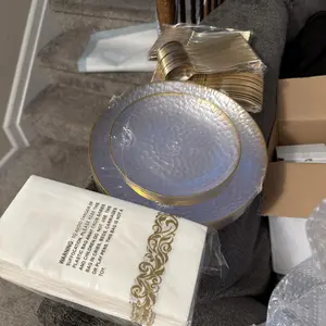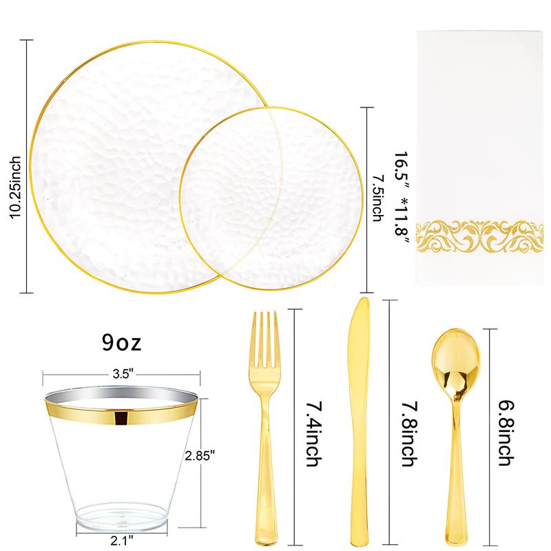 Elegant Design: Our clear plastic plates with gold trim feature a stylish hammered pattern, adding a touch of sophistication to any event.