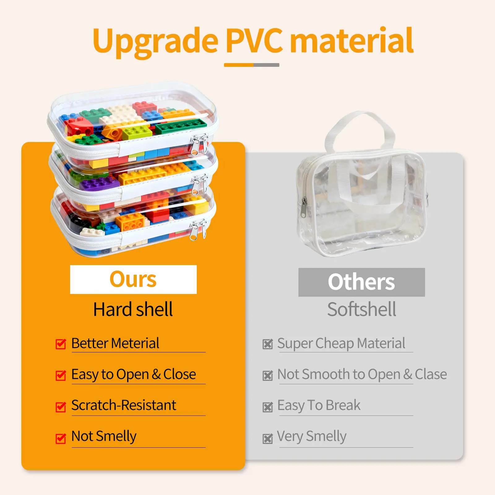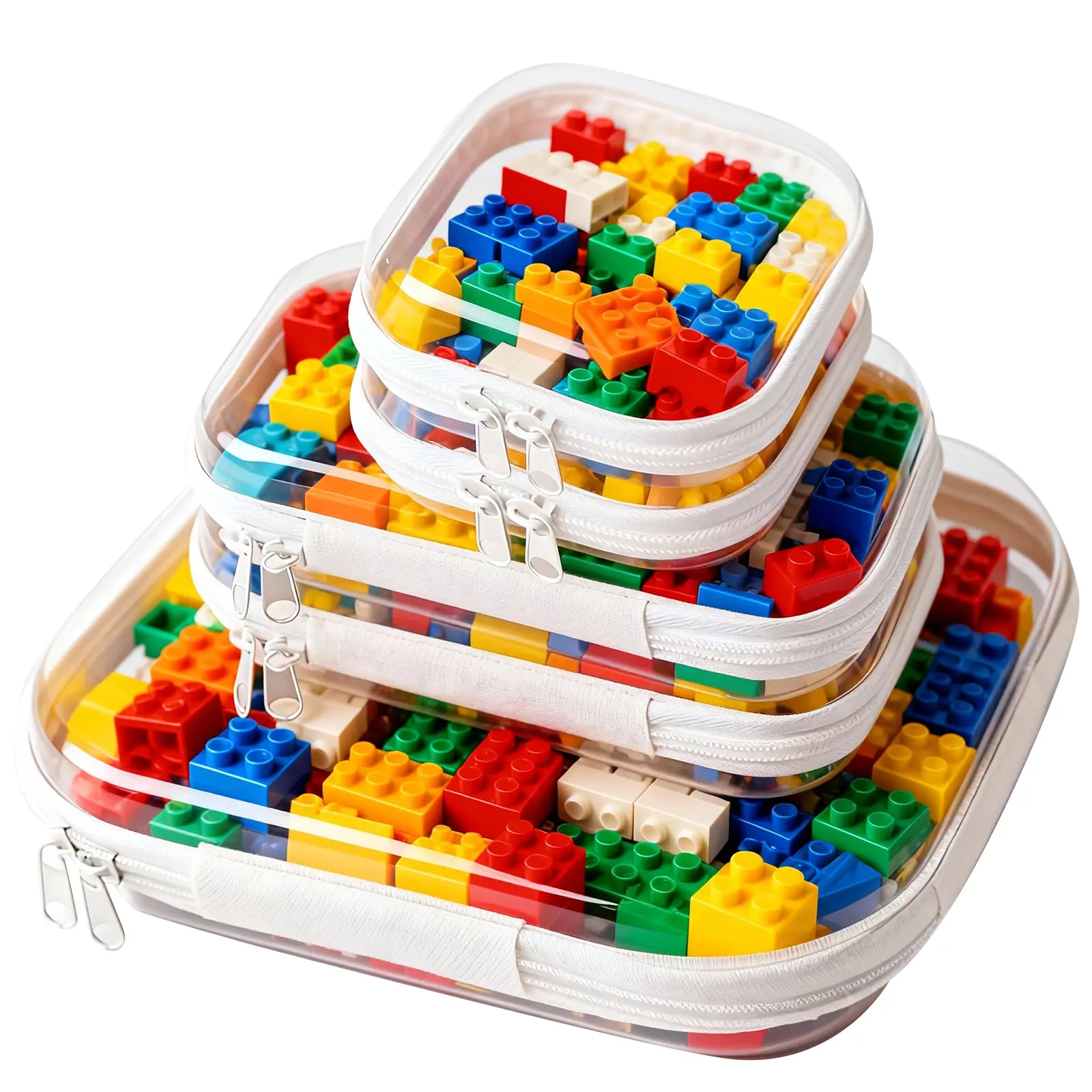 Clear Toy Storage Bag, 3 Counts Waterproof Zipper Building Block Organizers, Portable Washable Storage Bags for Home, Office and School, Space Saving Bags