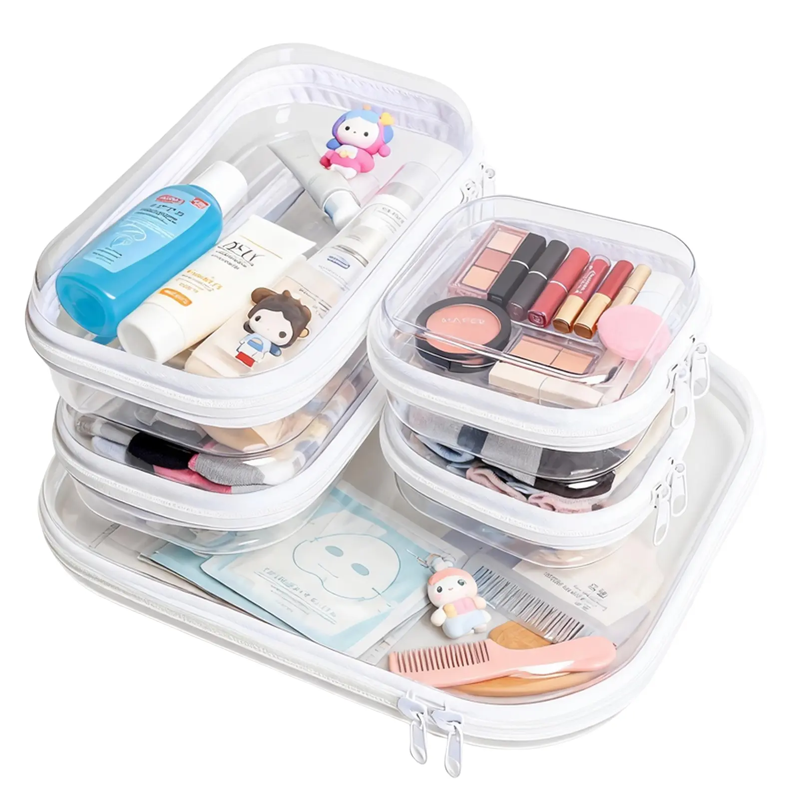 5PCS Clear Hard Shell Zippered Case, Diaper Bag Organizing Pouches, Waterproof Cosmetic Bag, Kid's Toy Strage Organizer Bins, Pencil Case, Christmas Storage Bins Clear Hard Shell Zippered Case, Diaper Bag Organizing Pouches, Waterproof Cosmetic Bag