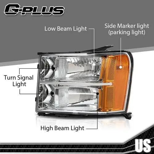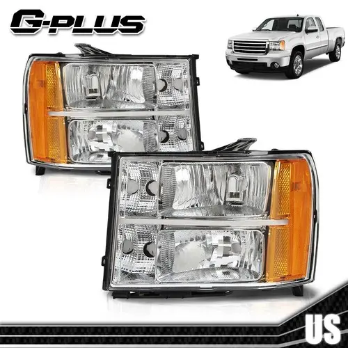 5. 2pcs Clear Headlights Headlamps Fit For 2007-2013 GMC Sierra 1500 2500HD 3500HD