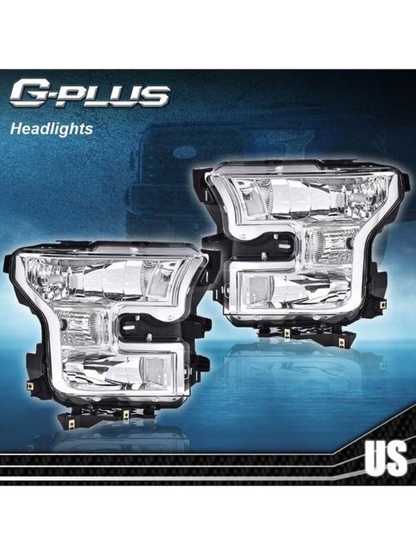 Fit For 2015-2017 Ford F150 Clear Headlights Chrome Headlamps 1Pair Head Light New