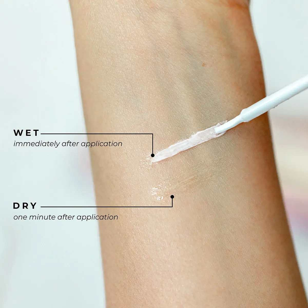 I have sensitive skin and this product does not irritate. Easy to apply a thin layer to the lash. Removes easily. Dries clear and quickly. When wet there is a slight iridescence which helps to see where you are placing the lash. The iridescence vanishes when dry. Only negative is that the glue remains slightly tacky which causes hair to get stuck. It's the only glue I use.