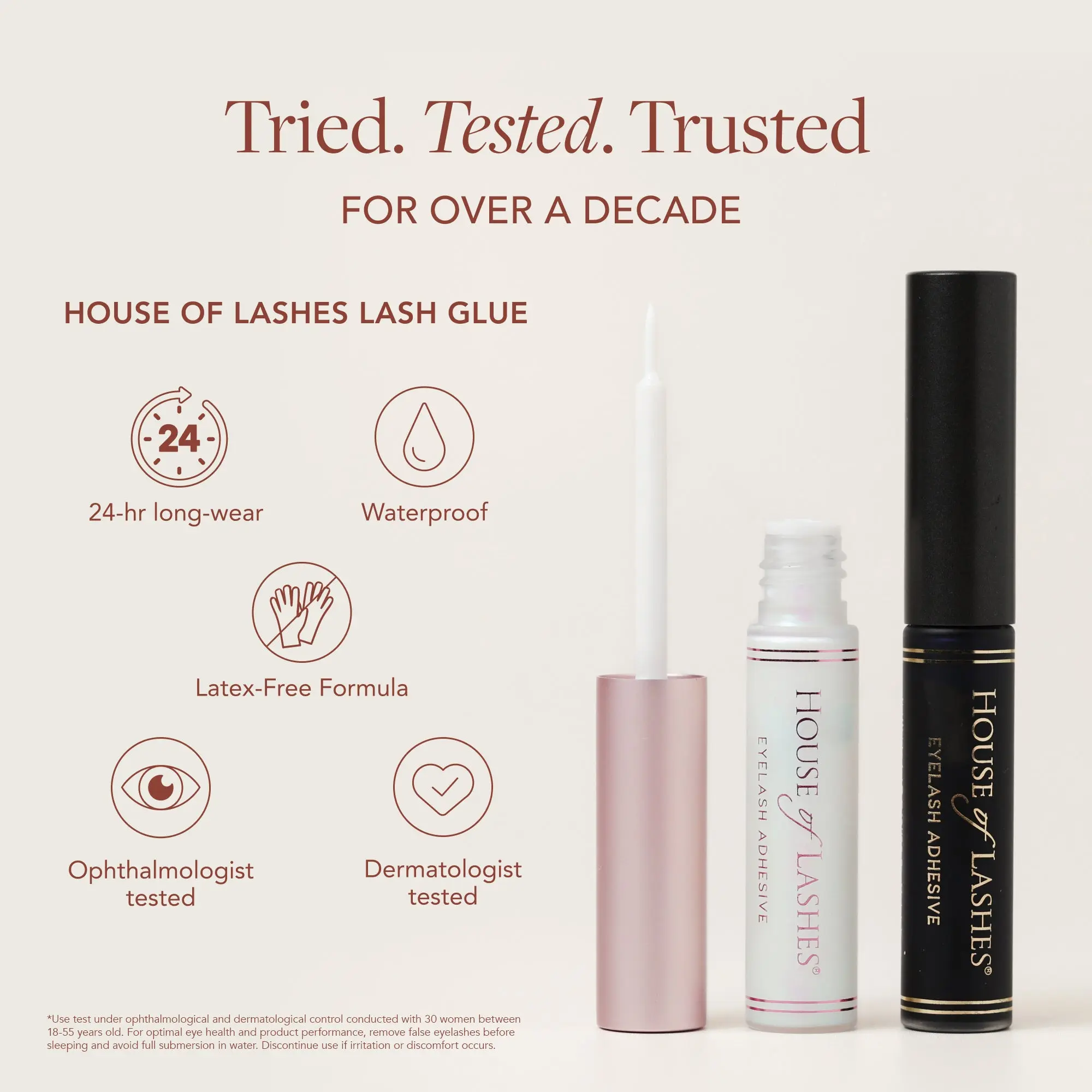 I became ******** to my favorite mascara. This glue has been a game changer. It goes on smoothly ,holds House of Lash eyelashes perfectly.
