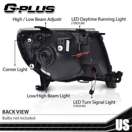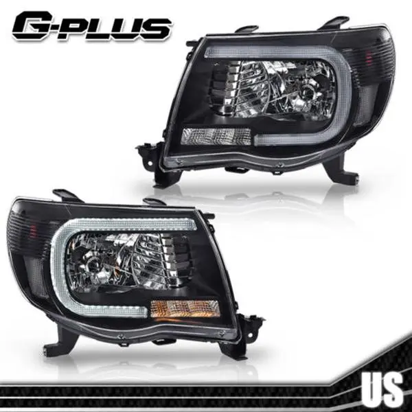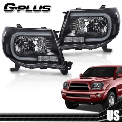 Fit For 05-11 Toyota Tacoma Clear Lens Black Housing Headlights w/ LED DRL