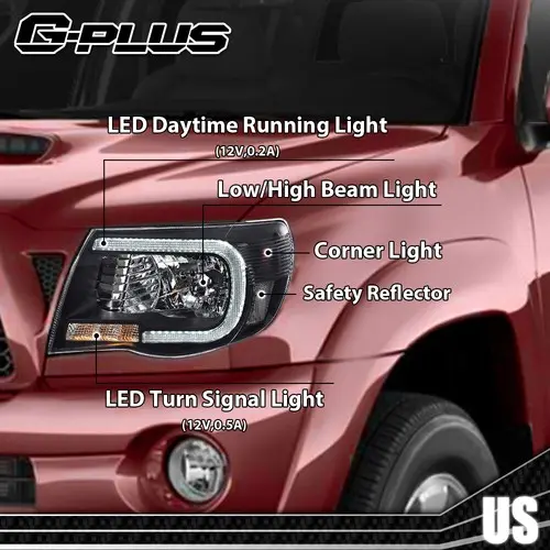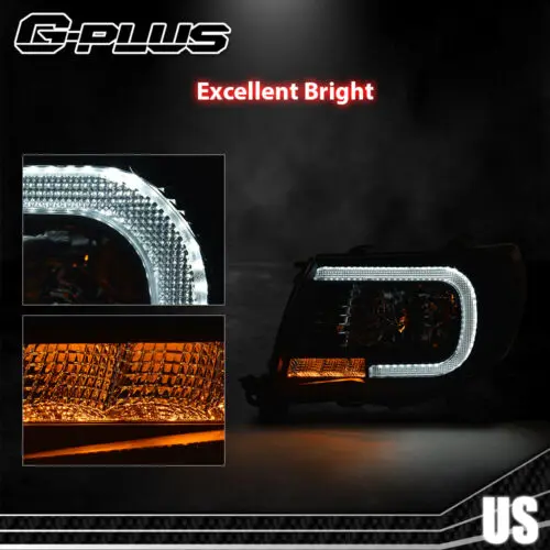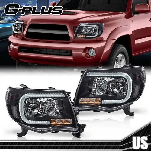 5. Fit For 05-11 Toyota Tacoma Clear Lens Black Housing Headlights w/ LED DRL