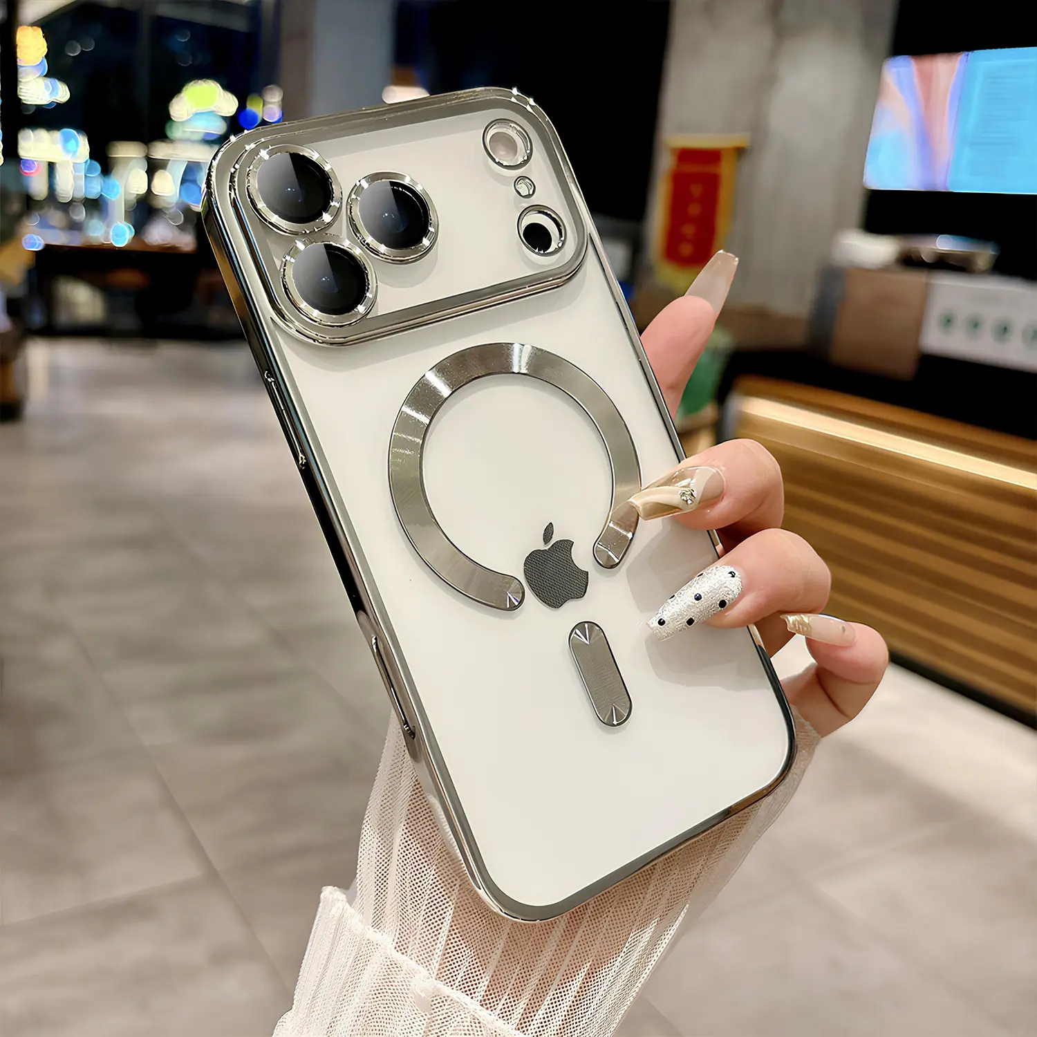 Clear Magnetic Case for iPhone 17 Pro Max 16 15 14 13 Pro Max, Compatible with MagSafe, Slim Soft TPU Transparent Phone Cover with Built-in Camera Lens Protector, Shockproof Anti-Scratch Design
