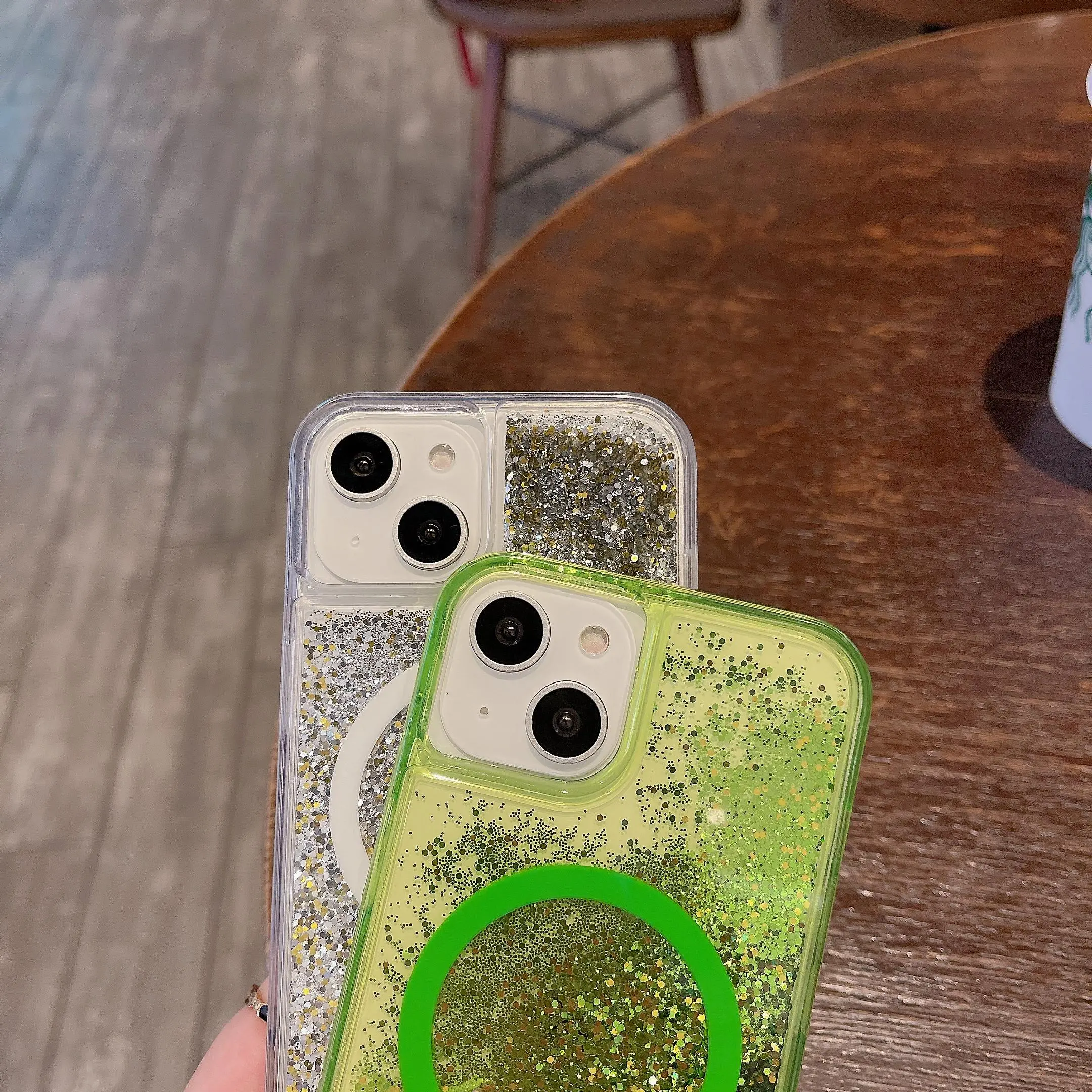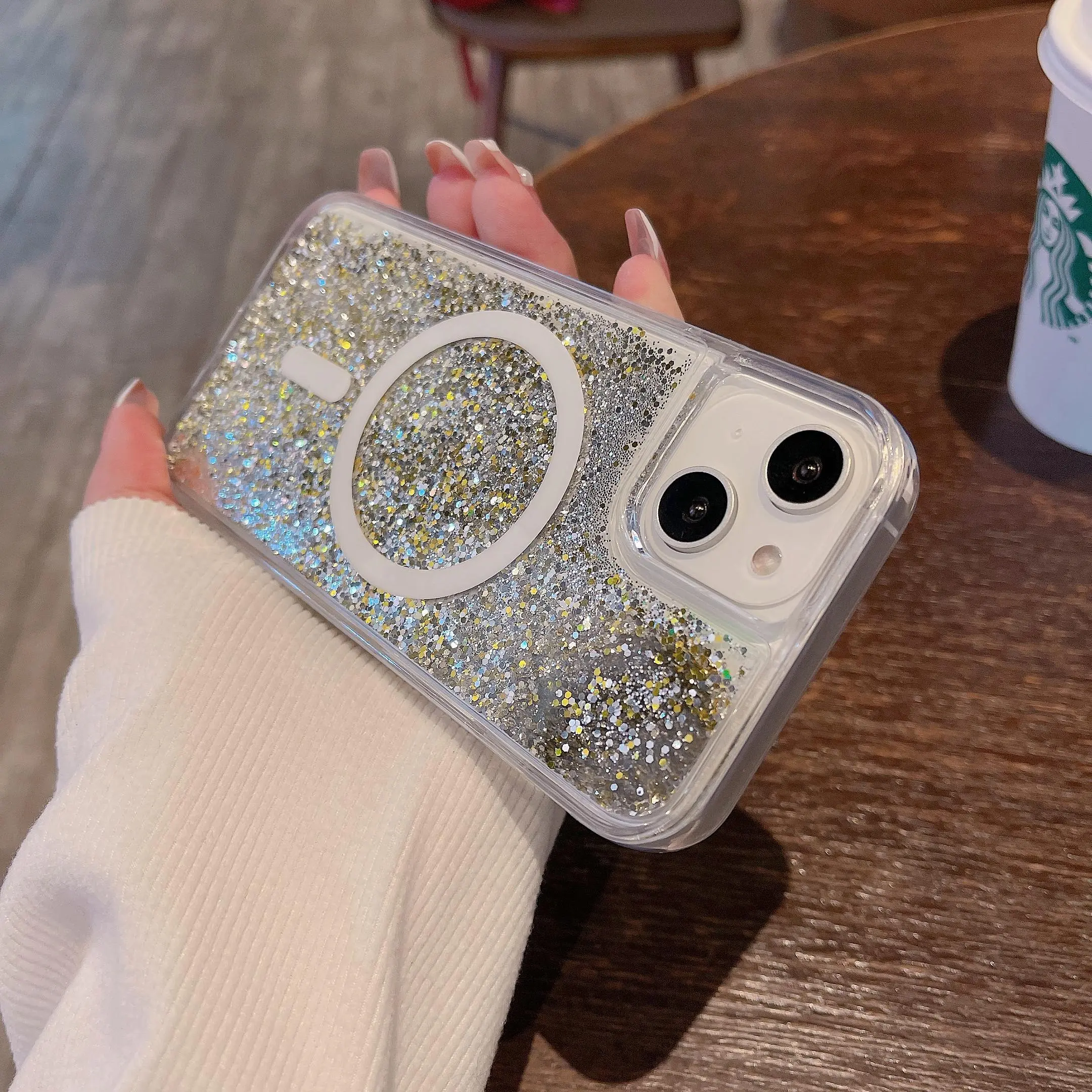 Clear magnetic glitter case – fits iPhone 13/14/15/16 Pro Max, viral liquid glitter design, full coverage, drop-proof & wireless charging ready!