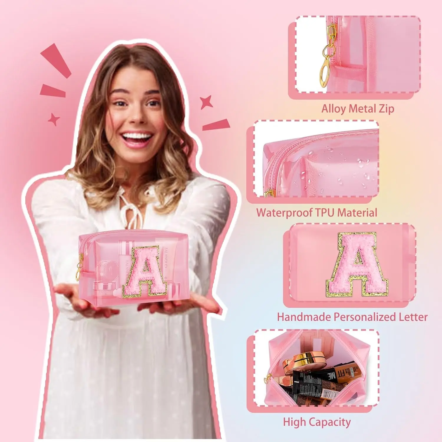 ·: This personalized embroidered glitter monogrammed clear travel toiletries bag has 26 monogram styles to choose from, perfect for anniversaries, Valentine's Day, birthdays and other occasions, choose an exclusive monogram for your daughter, mother, best friend, wife, this is definitely a surprise gift!