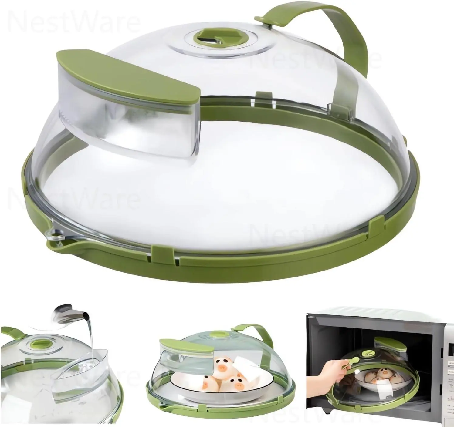 ·2-in-1 Microwave Steamer & Splash Protector Cover, Safe BPA-Free ,Clear Microwave Splatter Cover for Food with Handle and Water Storage Box, Microwave Plate Food Cover, Home Kitchen Gadgets and Accessories (1PC)
