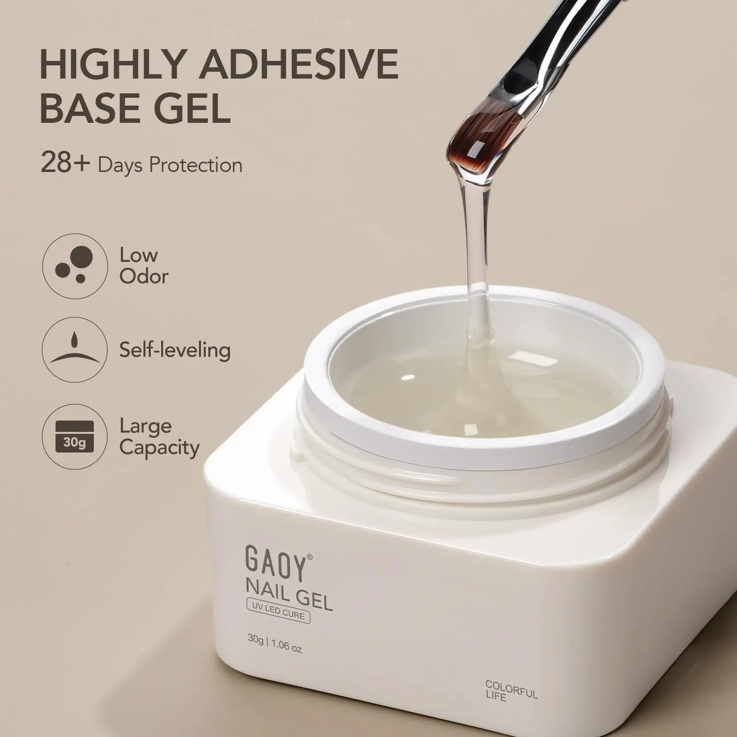 Package Includes: GAOY builder base coat of 1.06oz (30g) + a brush. Gel manicure essentials to enjoy the nail art from the comfort of your own home