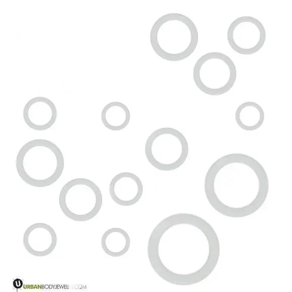 These Clear "O" Rings come in a pack of 6, with sizes ranging from 16G (1.2mm) to 1" (25mm). Replace lost or worn out "O" Rings easily and keep your jewelry secure.