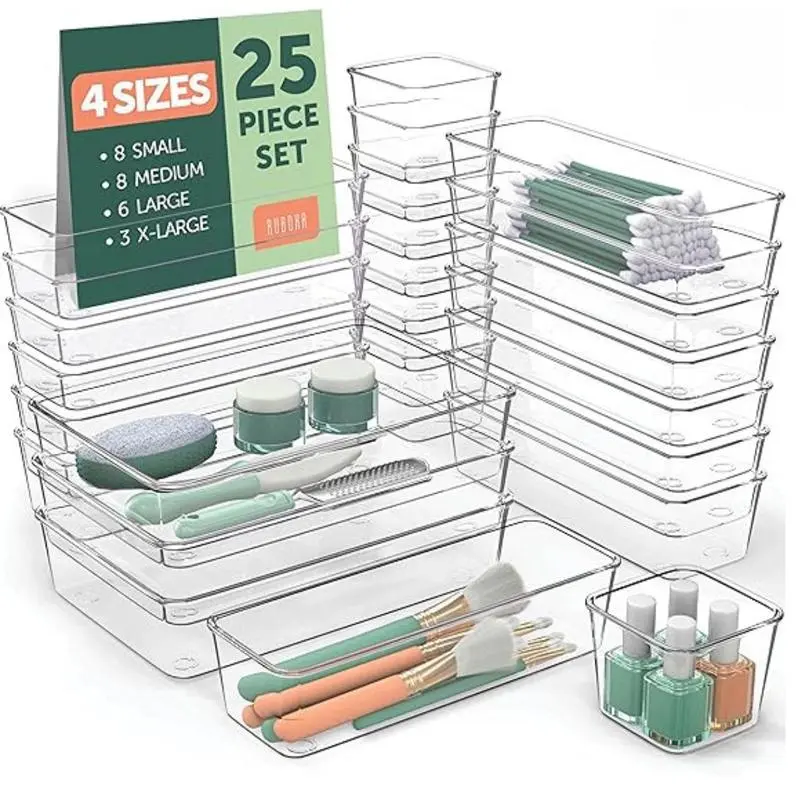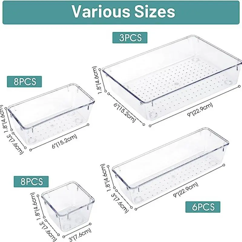 Premium Material: The drawer organizer is made of non-toxic plastic which may be safely used. The transparent design makes it easy to find what you need quickly.
